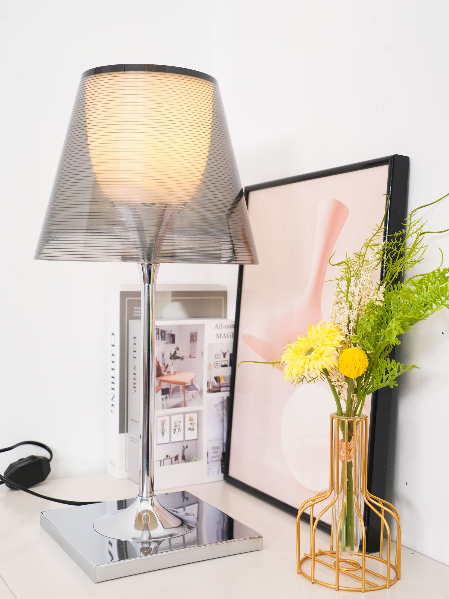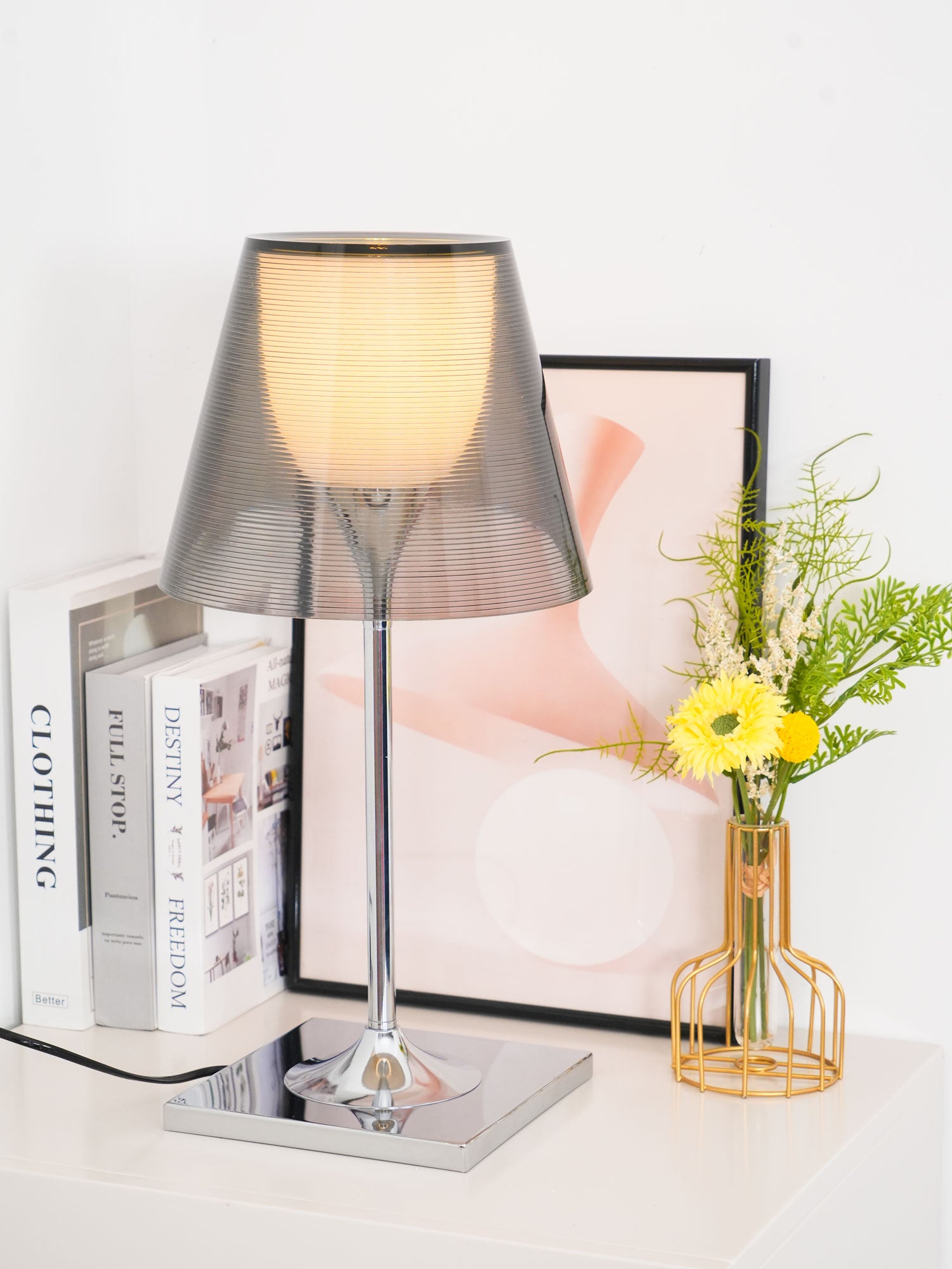 Tämä inspiroiva pöytävalaisin tuottaa hajavaloa läpinäkyvän diffuusorin kautta, joka siirtää silmää sulavasti ylöspäin. Jalusta, tanko ja diffuusorin tuki ovat painevalettua, kiillotettua metalliseosta. Siinä on kiillotettu alumiiniputki ja ruiskuvalettu, mattamusta PA (nailon) pohjakansi. Opaalin sisäinen diffuusori on ruiskuvalettu PC (polykarbonaatti). Ulompi diffuusori on läpinäkyvää tai PMMA-kaasua (polymetyylimetakrylaattia).
