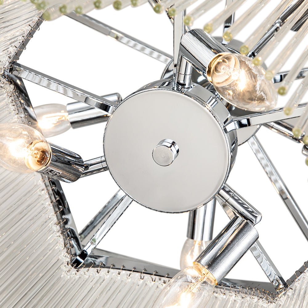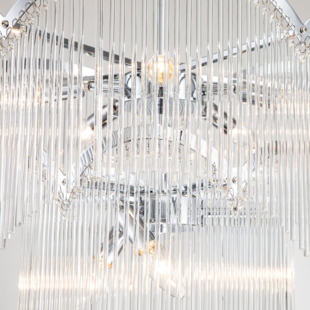 Kahdeksan valoa • 2-kerroksiset • Kristallilasitangot • Ympäristövalo • Kiillotettu kromiviimeistely • E12 kynttelikköpolttimot (ei sisälly) • Kiinteä • UL-listattu