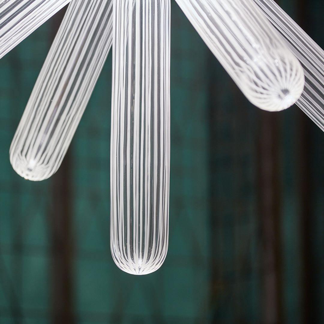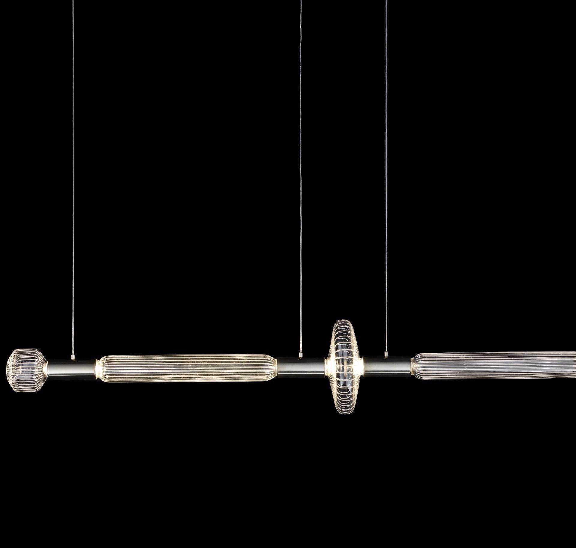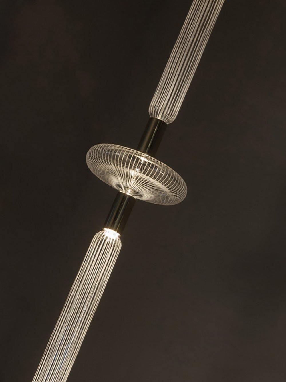 Salakirjakokoelma on perintötekniikoiden ja nykyajan muodon vastakohta. Sen herkät käsinpuhalletut lieriömäiset kristallipalat on leikattu puhtain, selkein viivoin. Valo säteilee vain liitäntäpisteistä ja lähteet on nerokkaasti piilotettu kokonaisvaikutelman pehmentämiseksi.