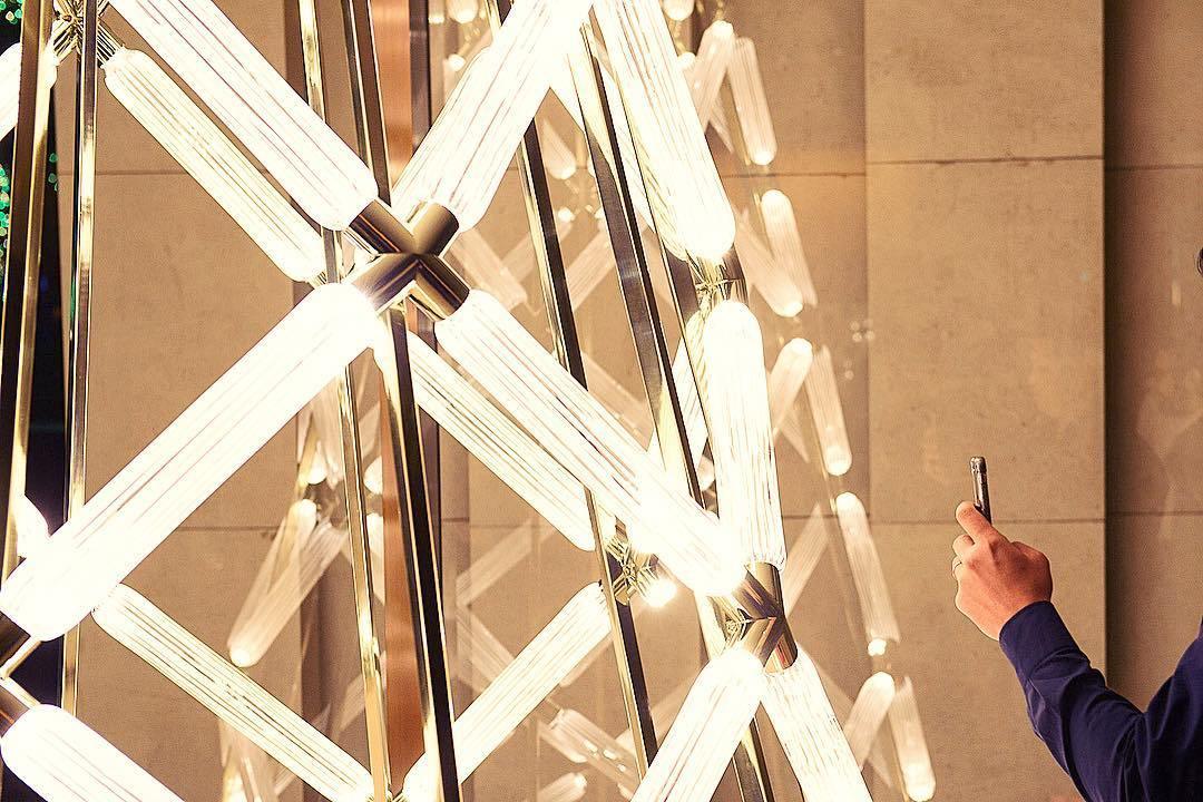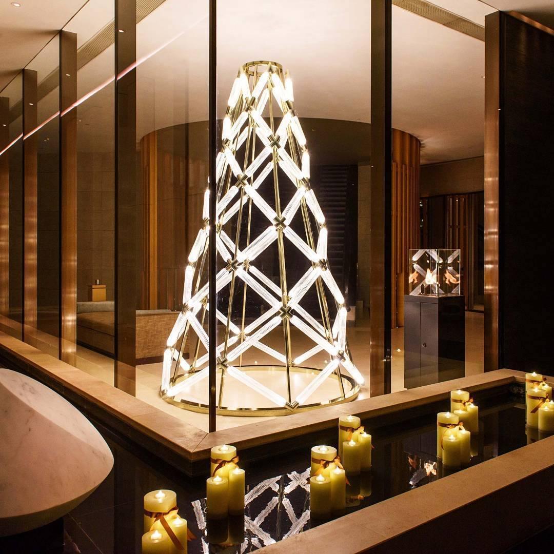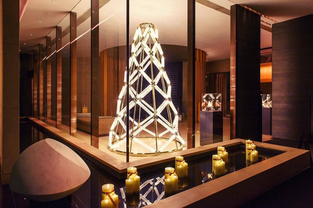 Salakirjakokoelma on perintötekniikoiden ja nykyajan muodon vastakohta. Sen herkät käsinpuhalletut lieriömäiset kristallipalat on leikattu puhtain, selkein viivoin. Valo säteilee vain liitäntäpisteistä ja lähteet on nerokkaasti piilotettu kokonaisvaikutelman pehmentämiseksi.