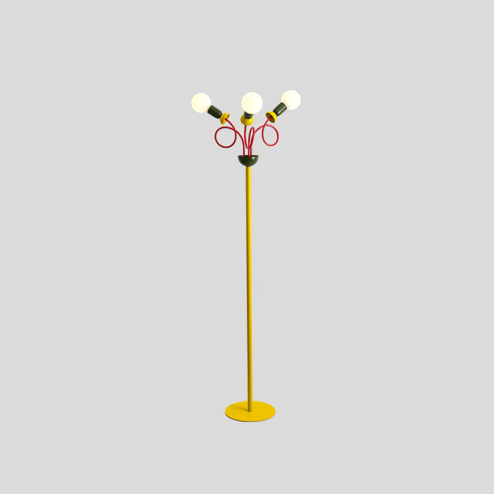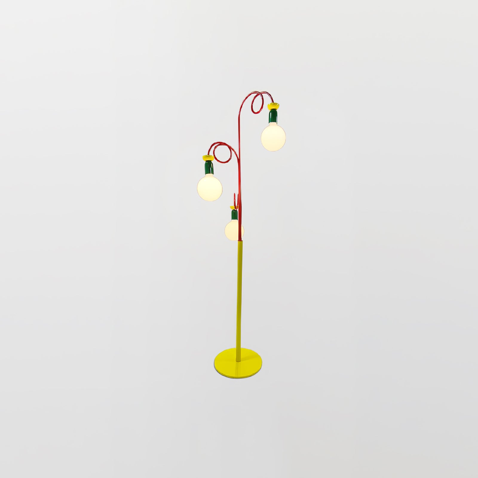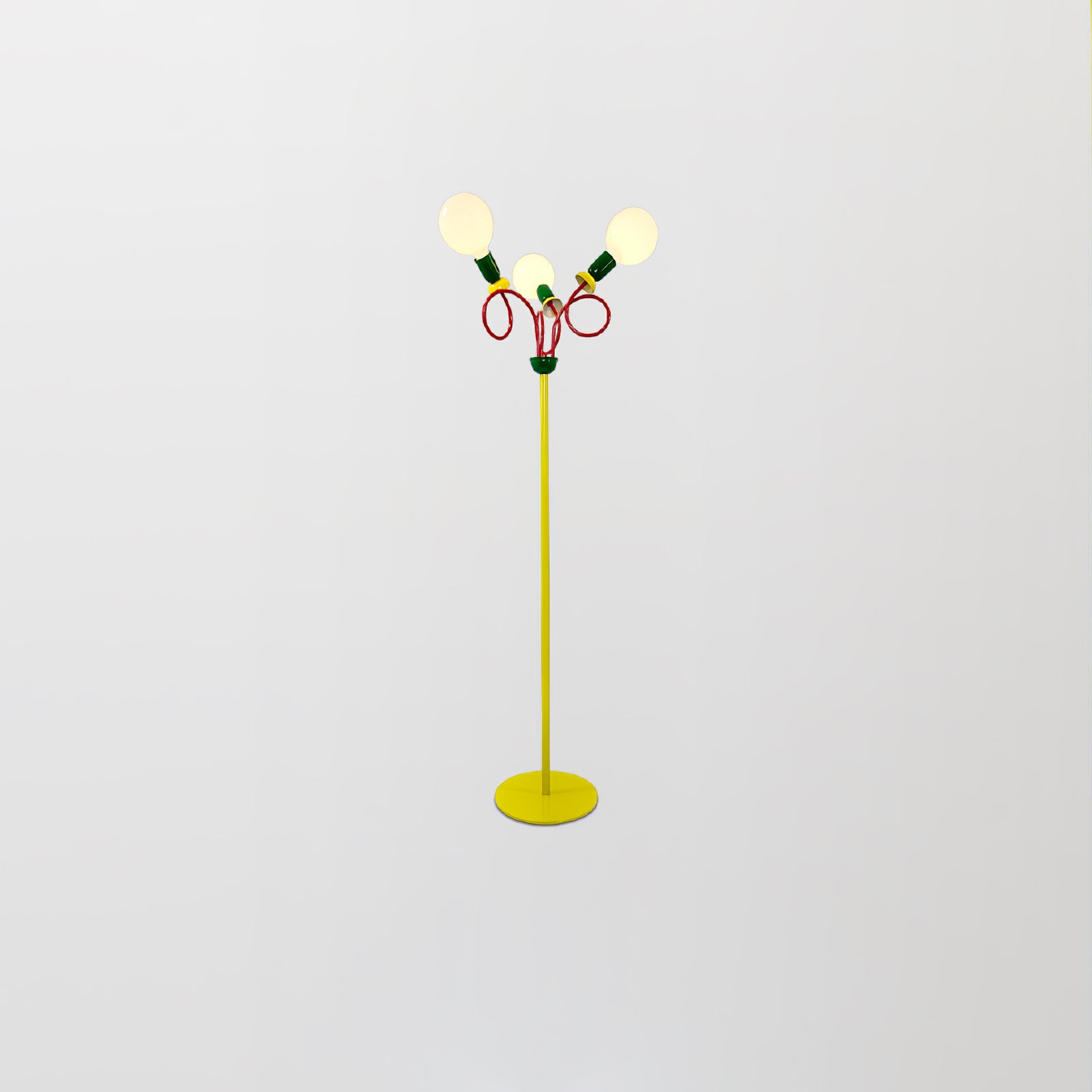 Löydä täydellinen tasapaino retro- ja modernin muotoilun välillä Circulo Play -lattiavalaisimen avulla. 1980-luvun Memphis-tyylistä inspiraation saaneessa designissa on silmiinpistävä geometrinen muoto ja kontrastiset punaiset renkaat, jotka kiinnittävät katsetta. Vihreät ja keltaiset aksentit lisäävät syvyyttä ja eloisuutta. Circulo Play -lattiavalaisin, jota täydentää visuaalisesti pyöristetty polttimo, antaa runsaasti valaistusta ja luo ainutlaatuisen estetiikan. Ihanteellinen kaikille, jotka etsivät persoonallista sisustusta, Circulo Play on täydellinen valinta yksilöllisen taiteellisuuden ilmaisemiseen.