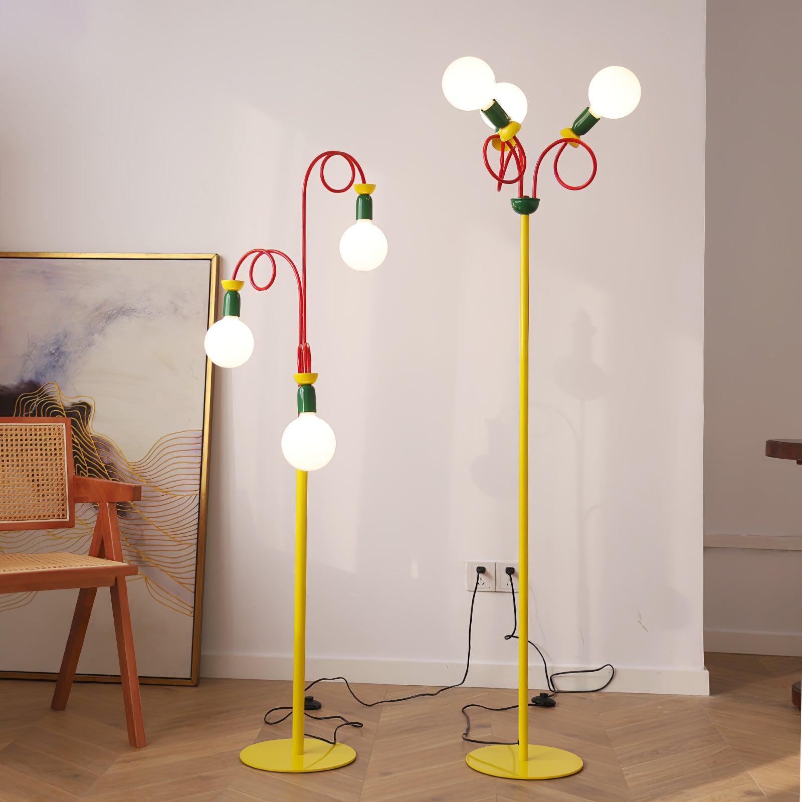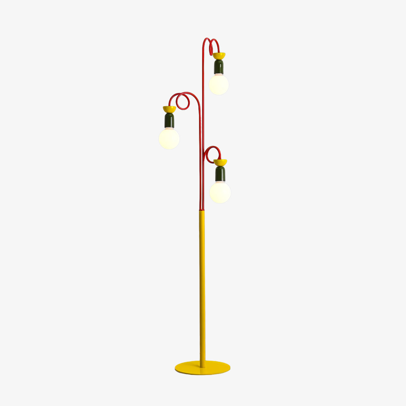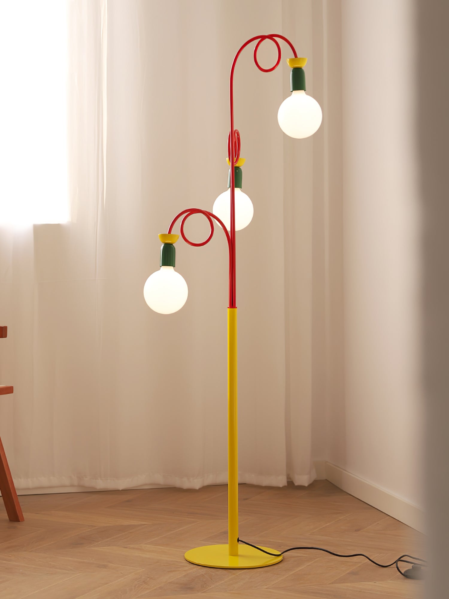 Löydä täydellinen tasapaino retro- ja modernin muotoilun välillä Circulo Play -lattiavalaisimen avulla. 1980-luvun Memphis-tyylistä inspiraation saaneessa designissa on silmiinpistävä geometrinen muoto ja kontrastiset punaiset renkaat, jotka kiinnittävät katsetta. Vihreät ja keltaiset aksentit lisäävät syvyyttä ja eloisuutta. Circulo Play -lattiavalaisin, jota täydentää visuaalisesti pyöristetty polttimo, antaa runsaasti valaistusta ja luo ainutlaatuisen estetiikan. Ihanteellinen kaikille, jotka etsivät persoonallista sisustusta, Circulo Play on täydellinen valinta yksilöllisen taiteellisuuden ilmaisemiseen.