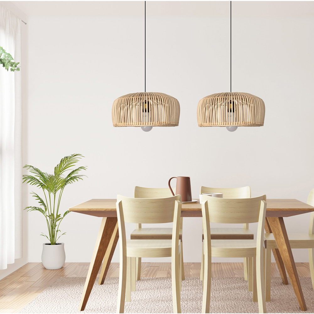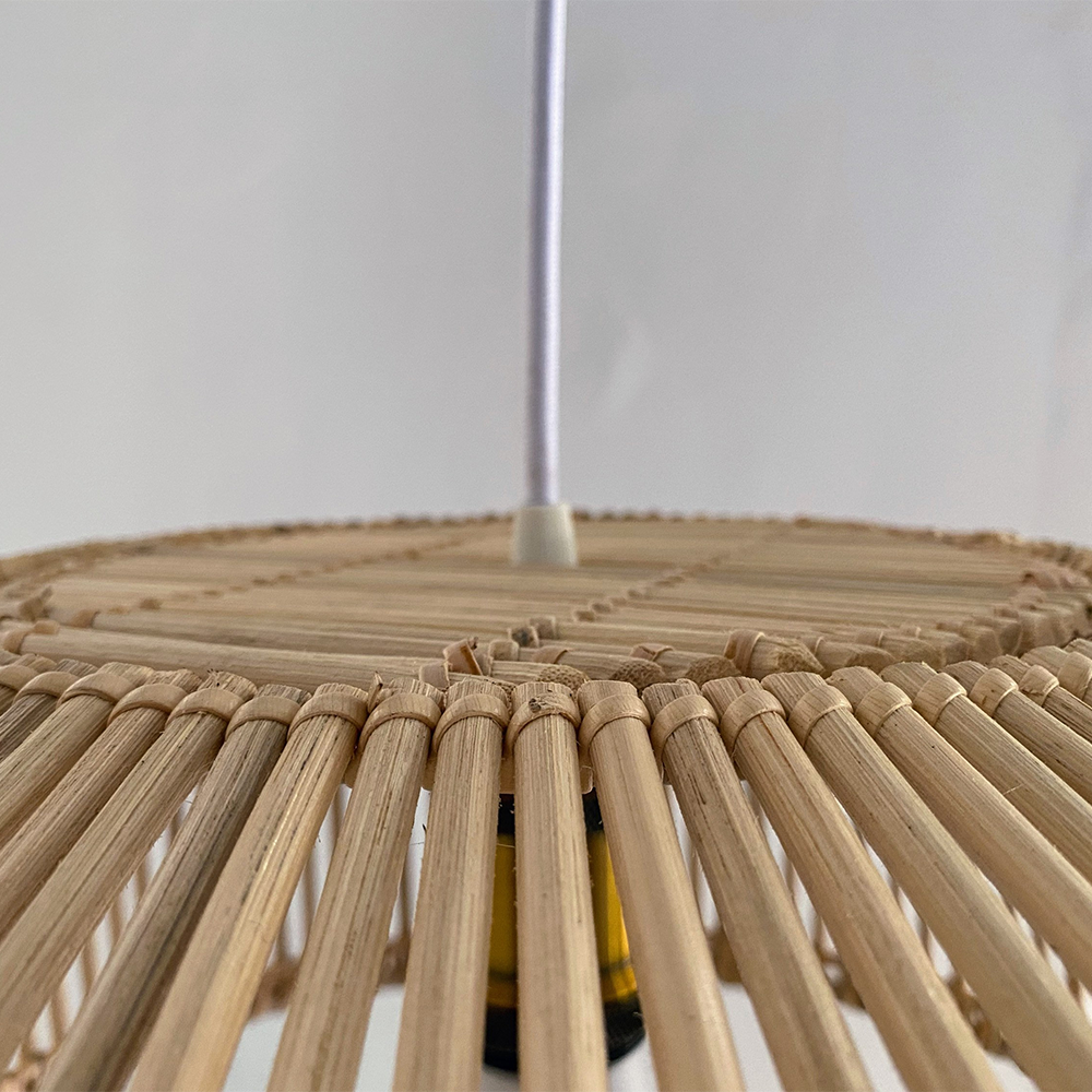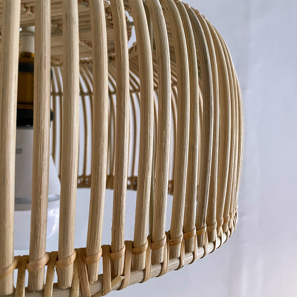 Coconut Grove rottinkiriippuvainen kattokruunu. Muuta tilasi rottinkivalaisinkruunumme kiehtovalla viehätysvoimalla. Se on valmistettu käsin monimutkaisella kudoksella, ja se täyttää kaikki huoneet maalaismaisella eleganssilla ja lämpimällä, kutsuvalla valaistuksella.