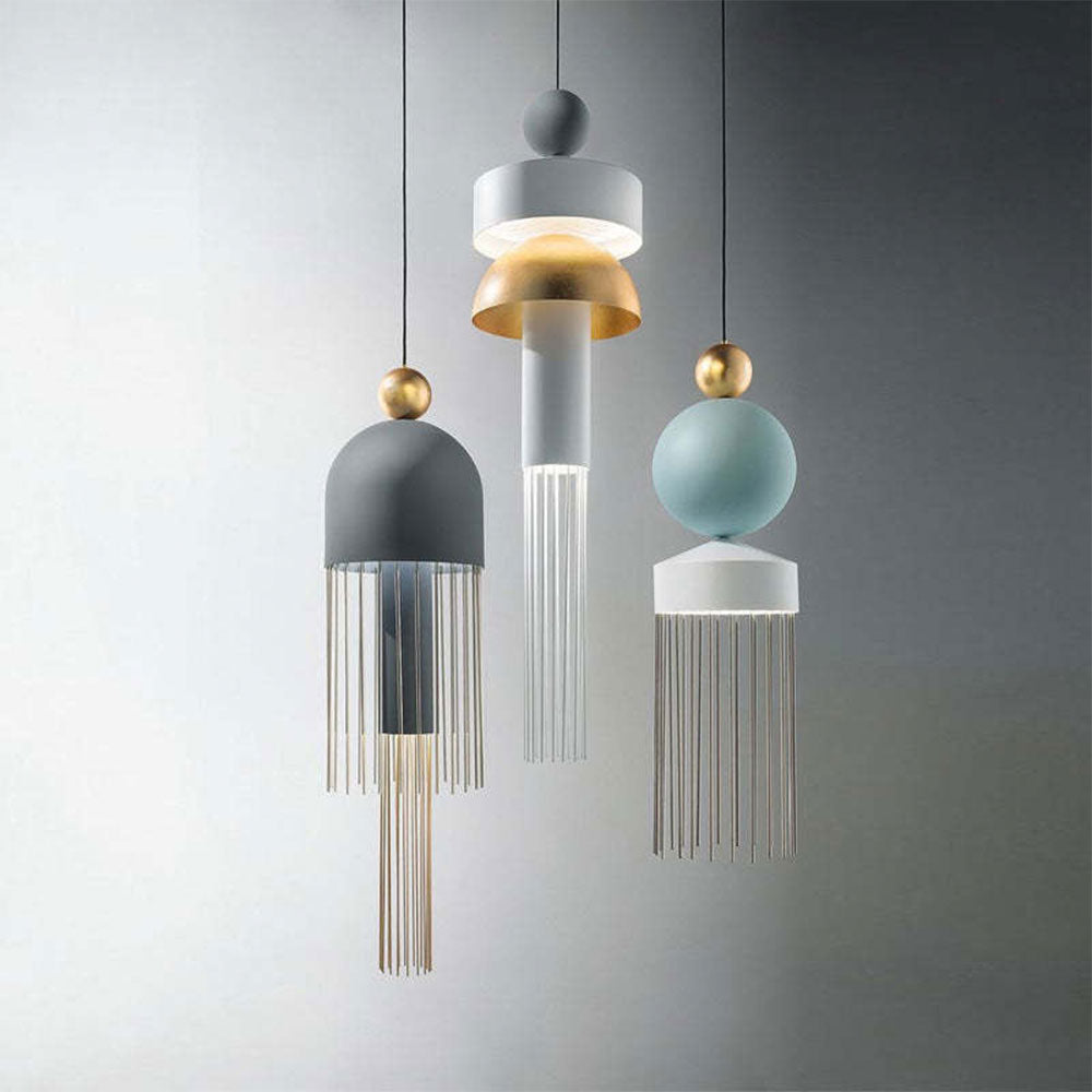 Metallin sorvauksen runkoa on rikastettu harjatuilla messinkiyksityiskohtilla ja perinteiset tekstiilihapsut on korvattu pienillä lakatuilla tai kullanvärisillä metallipalkilla. Tupsut antoivat erittäin modernin ja minimalistisen muotoilun, jota tehostivat kosketusvaikutteiset matta-pastelliviimeistelyt, vaikka saatavilla on myös täydellinen valkoinen viimeistely.