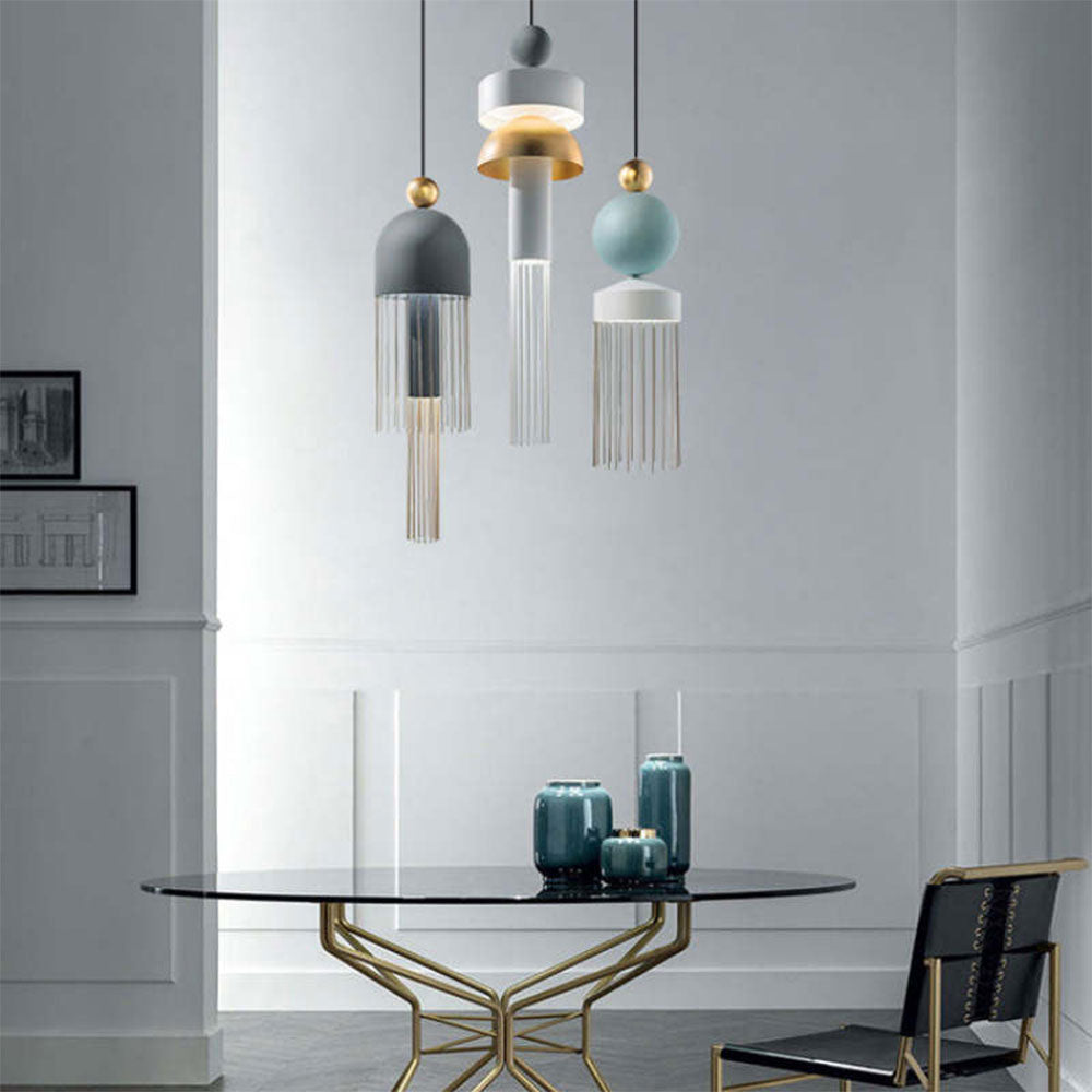 Kaksoispiste riippuvalaisin tupsulla