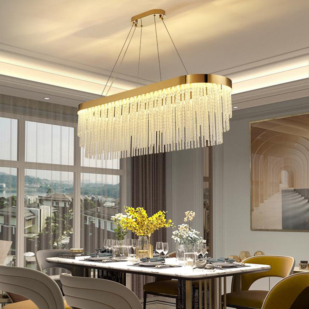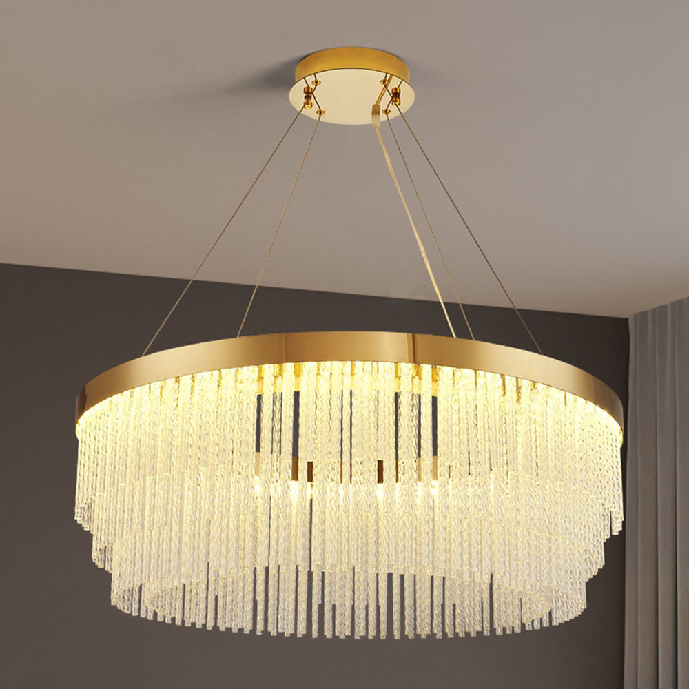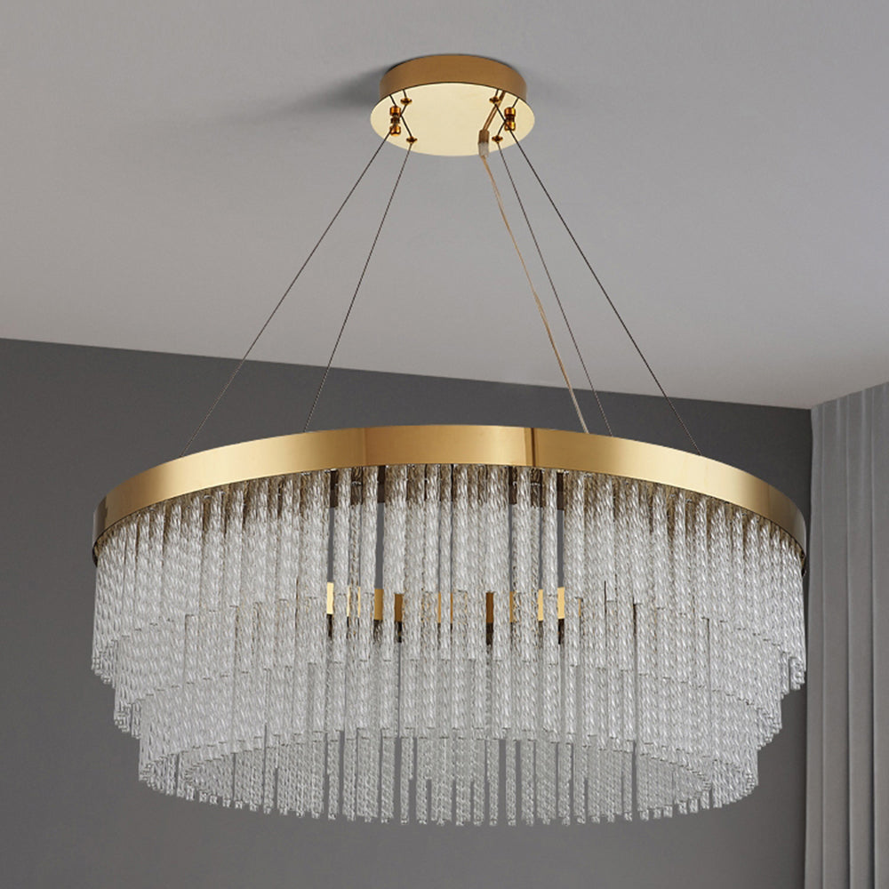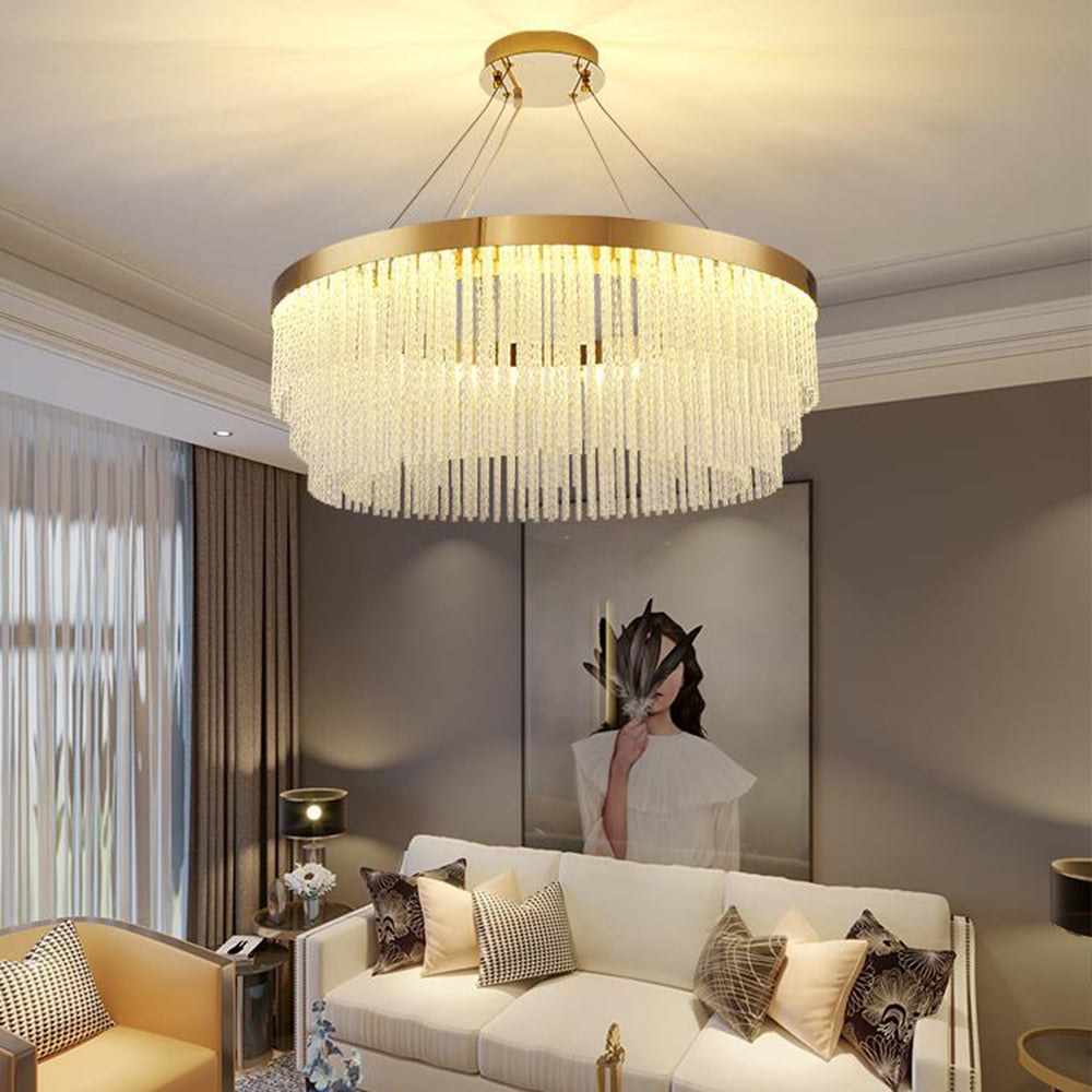- Riippuvalaisimessa on rengasmuotoilu, joka on yhdistetty kristallitupsuihin, jotta se luo yksinkertaisen ja hienon esteettisen ilmeen, joka on täynnä designia ja tarjoaa mukavan ja tyylikkään valaistusympäristön.