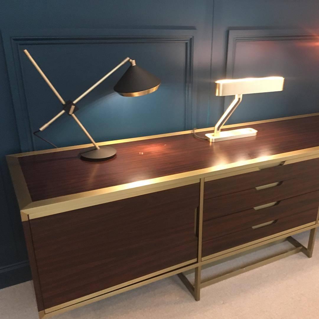 Koneistettu messinkigrilli luo teollisen tunnelman tyylikkääseen Colt Table Lightiin. Pronssiset sisäosat varressa ja opaalihajottimet tuottavat pehmeää, lämmintä valoa. Sisäänrakennettu kynälokero korostaa huomiota yksityiskohtiin.