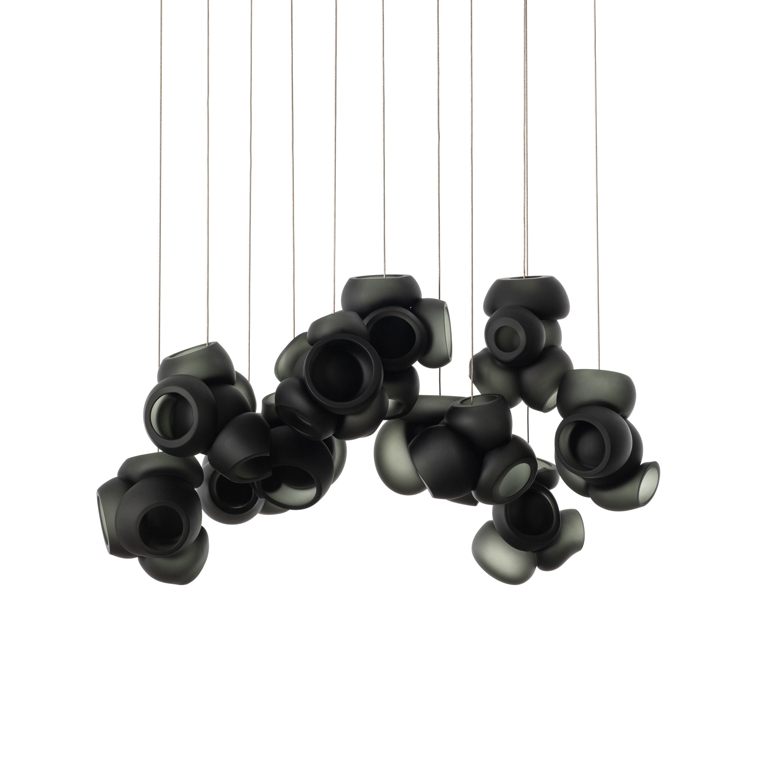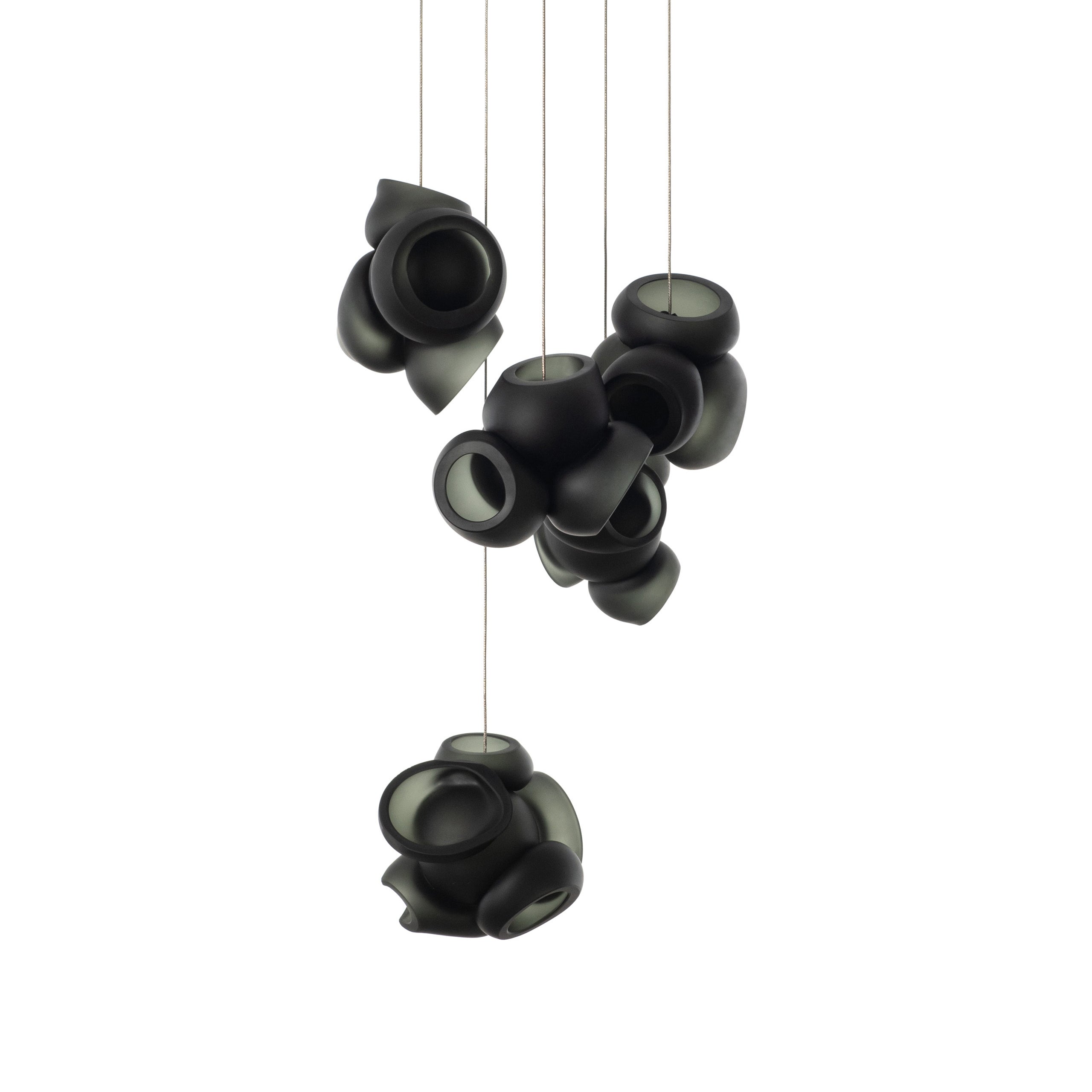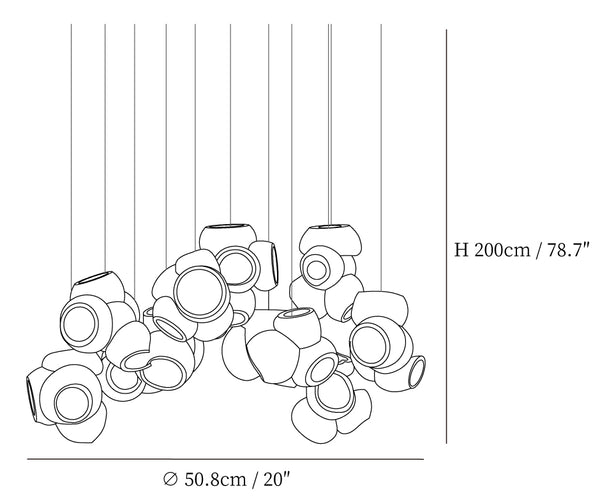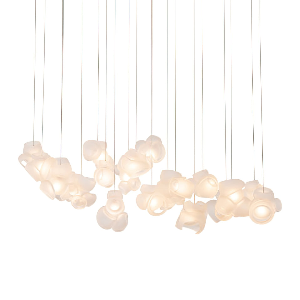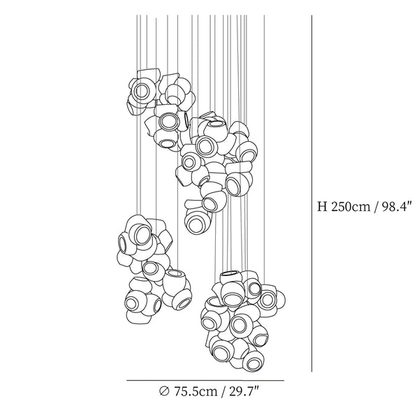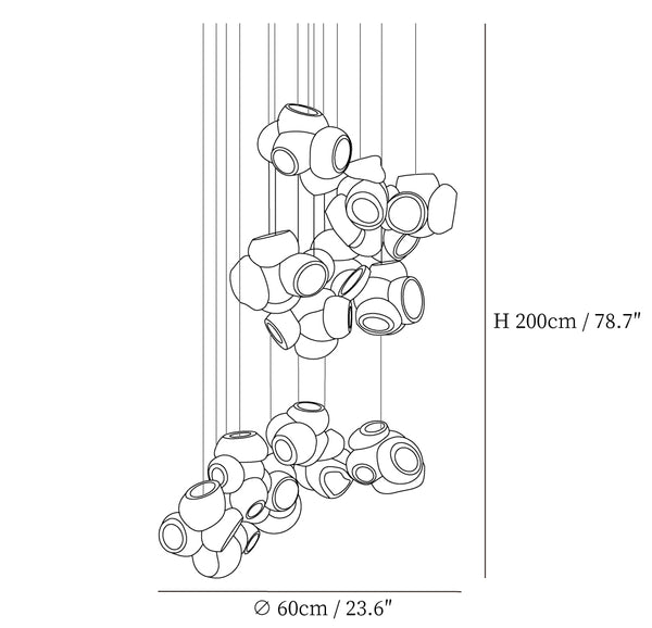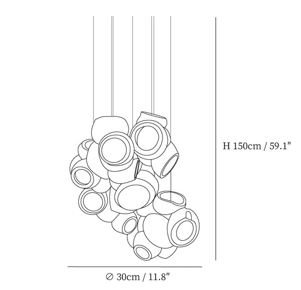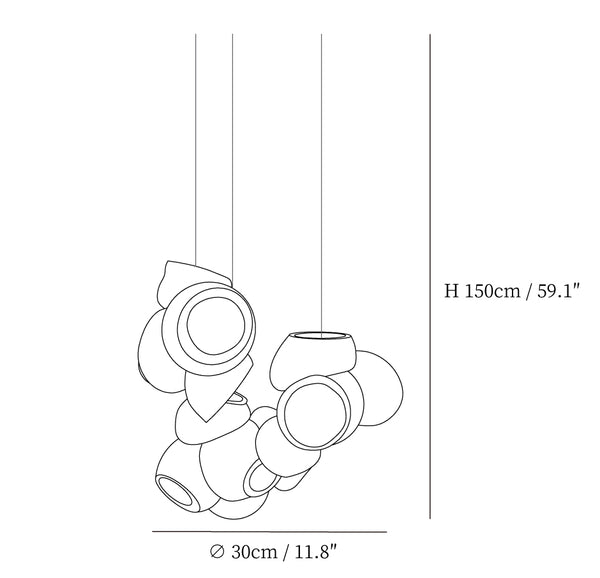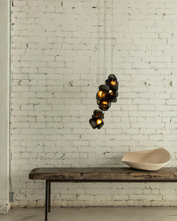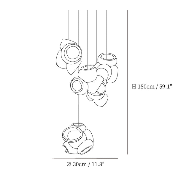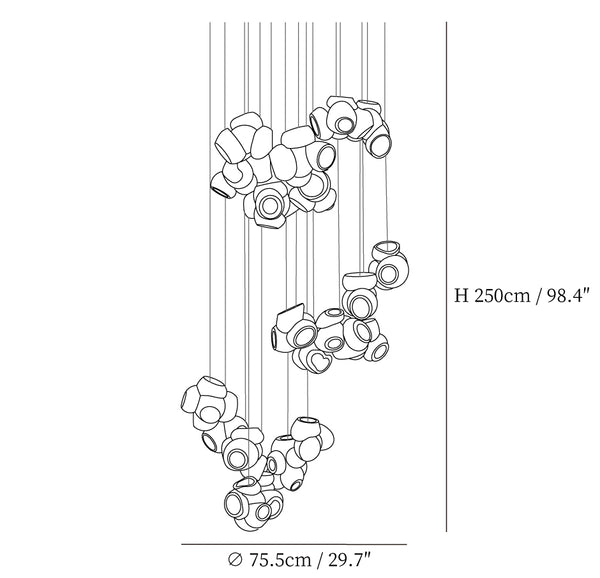 Modulaarinen kattokruunu muodostuu, kun useat lasinpuhaltimet tuottavat menetelmällisesti lasikuplia ja työntävät sitten muokattavat pallot välittömästi toisiinsa lukittuvaksi klusteriksi. Valaisin pysyy riippuvana ilmassa, kun se on kytketty kattokattoon. Tämä koriste-esine tuo modernia, käsintehtyä estetiikkaa asuintilaasi ja elävöittää suunnitteluasi.