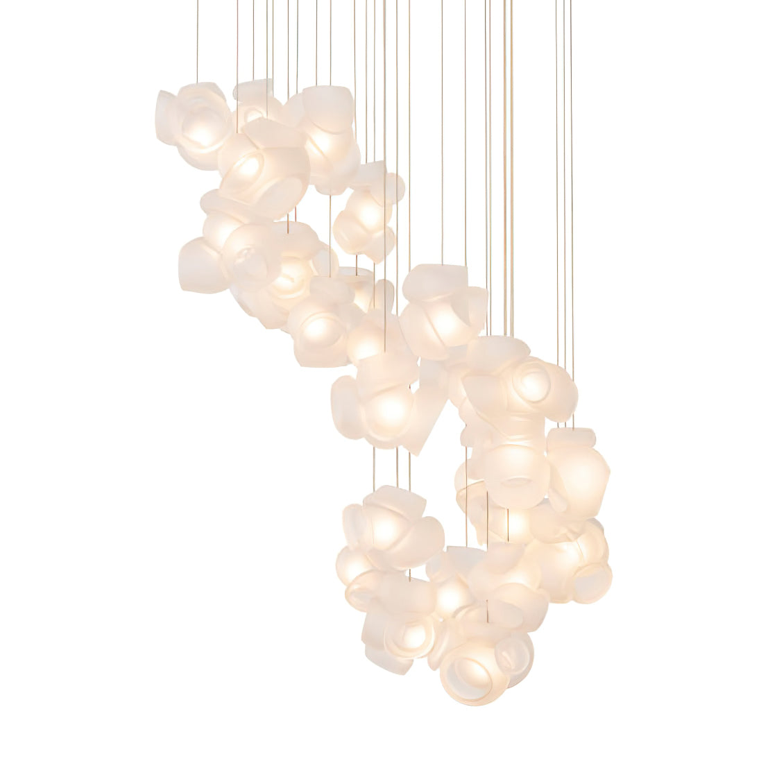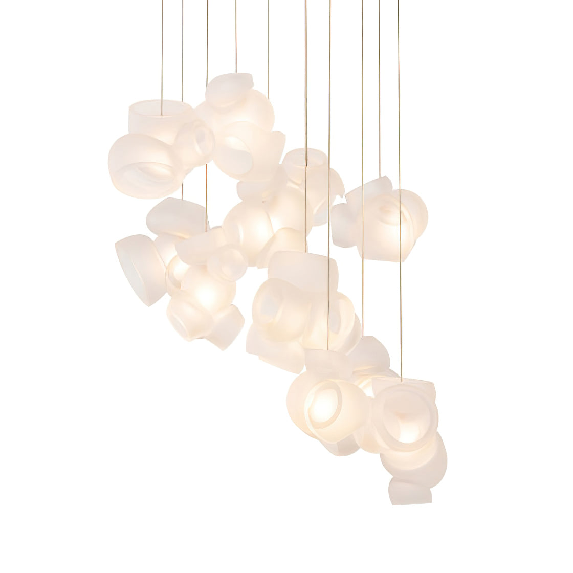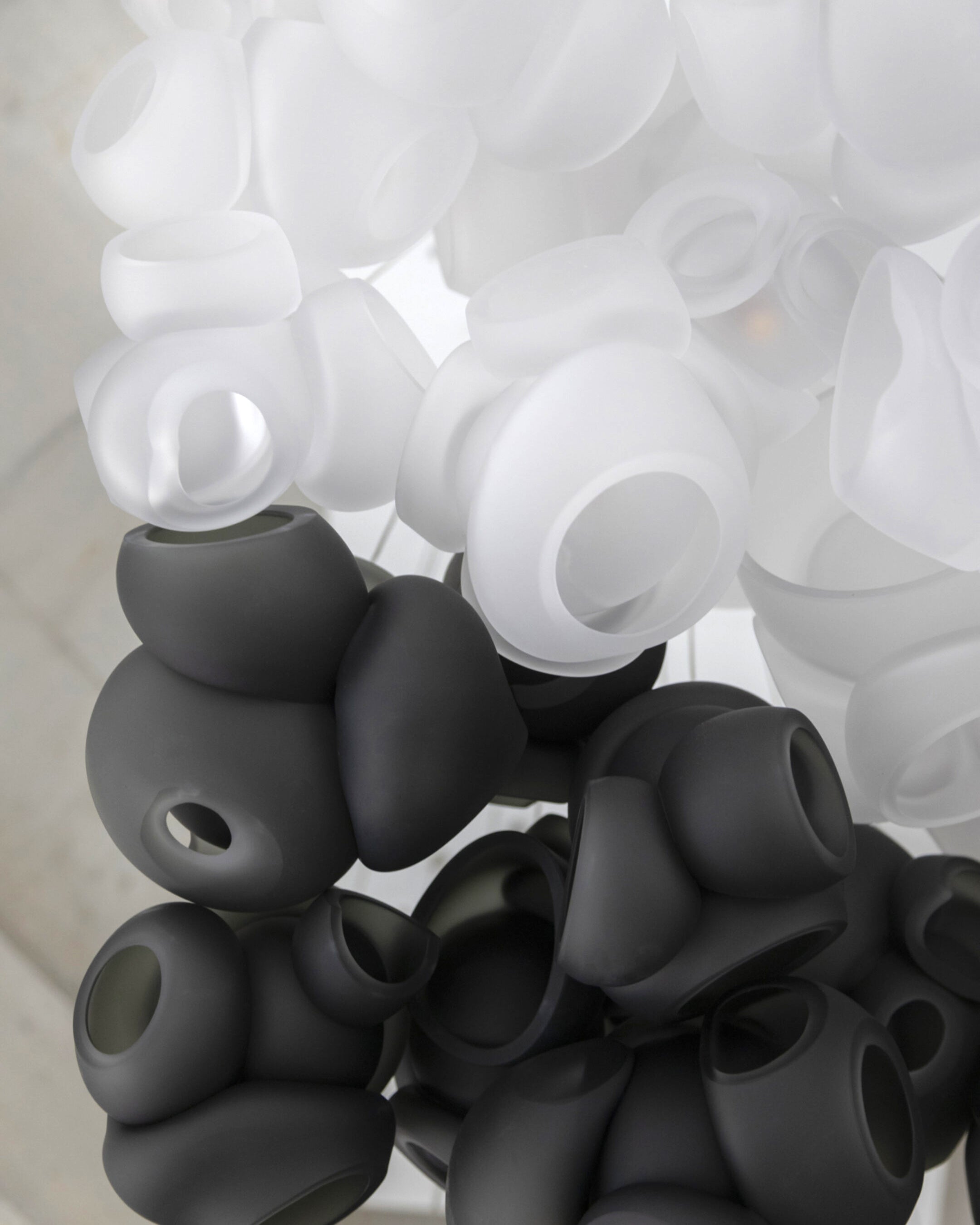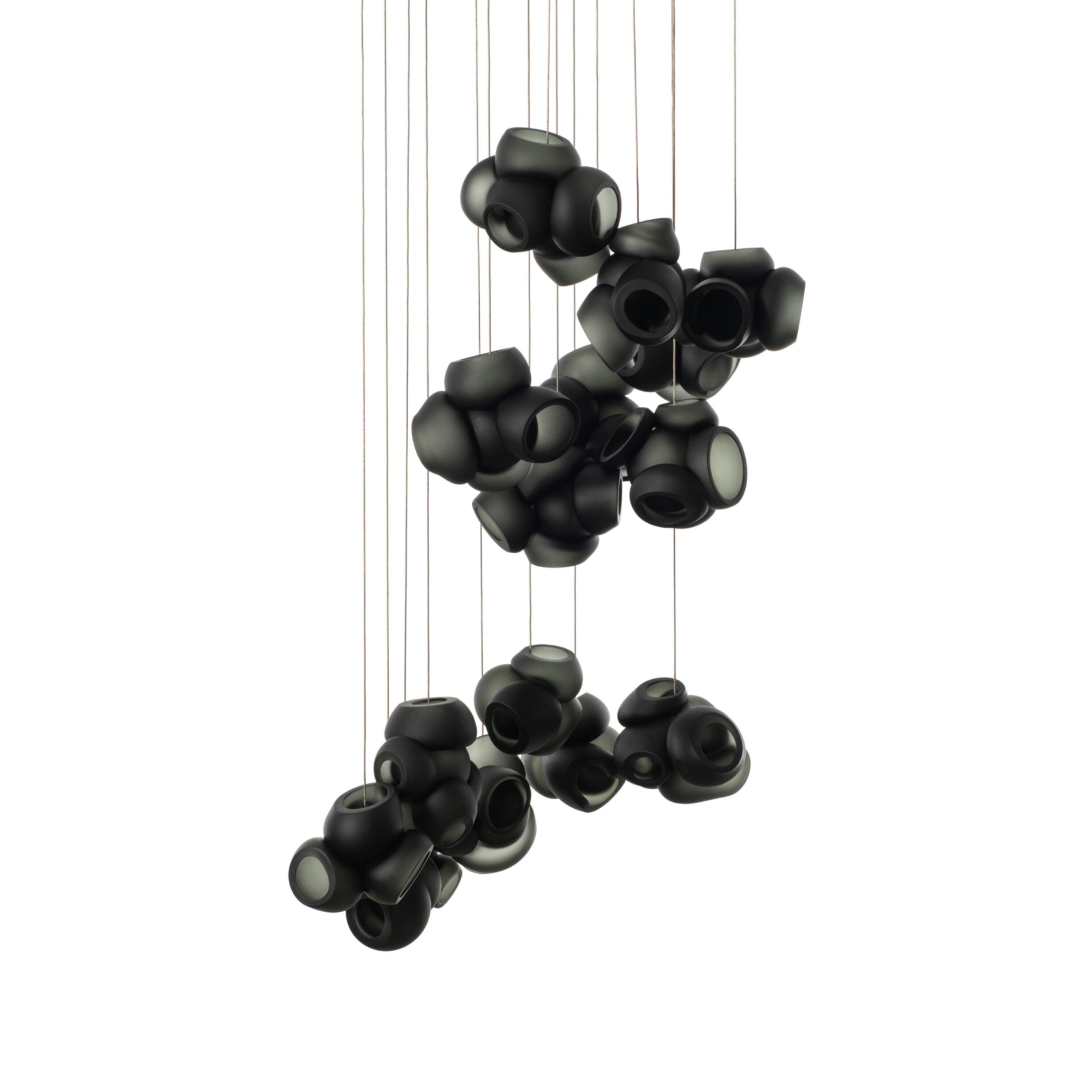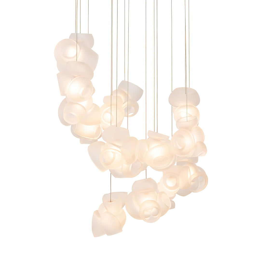 Modulaarinen kattokruunu muodostuu, kun useat lasinpuhaltimet tuottavat menetelmällisesti lasikuplia ja työntävät sitten muokattavat pallot välittömästi toisiinsa lukittuvaksi klusteriksi. Valaisin pysyy riippuvana ilmassa, kun se on kytketty kattokattoon. Tämä koriste-esine tuo modernia, käsintehtyä estetiikkaa asuintilaasi ja elävöittää suunnitteluasi.