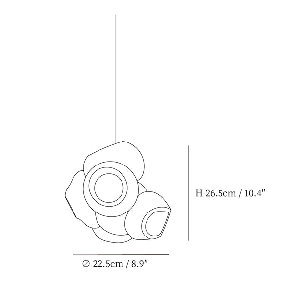 1Pään koko: Halkaisija 22,5 cm x K 26,5 cm / ∅ 8,9" x K 10,4". (59" riippuvaijeri.)