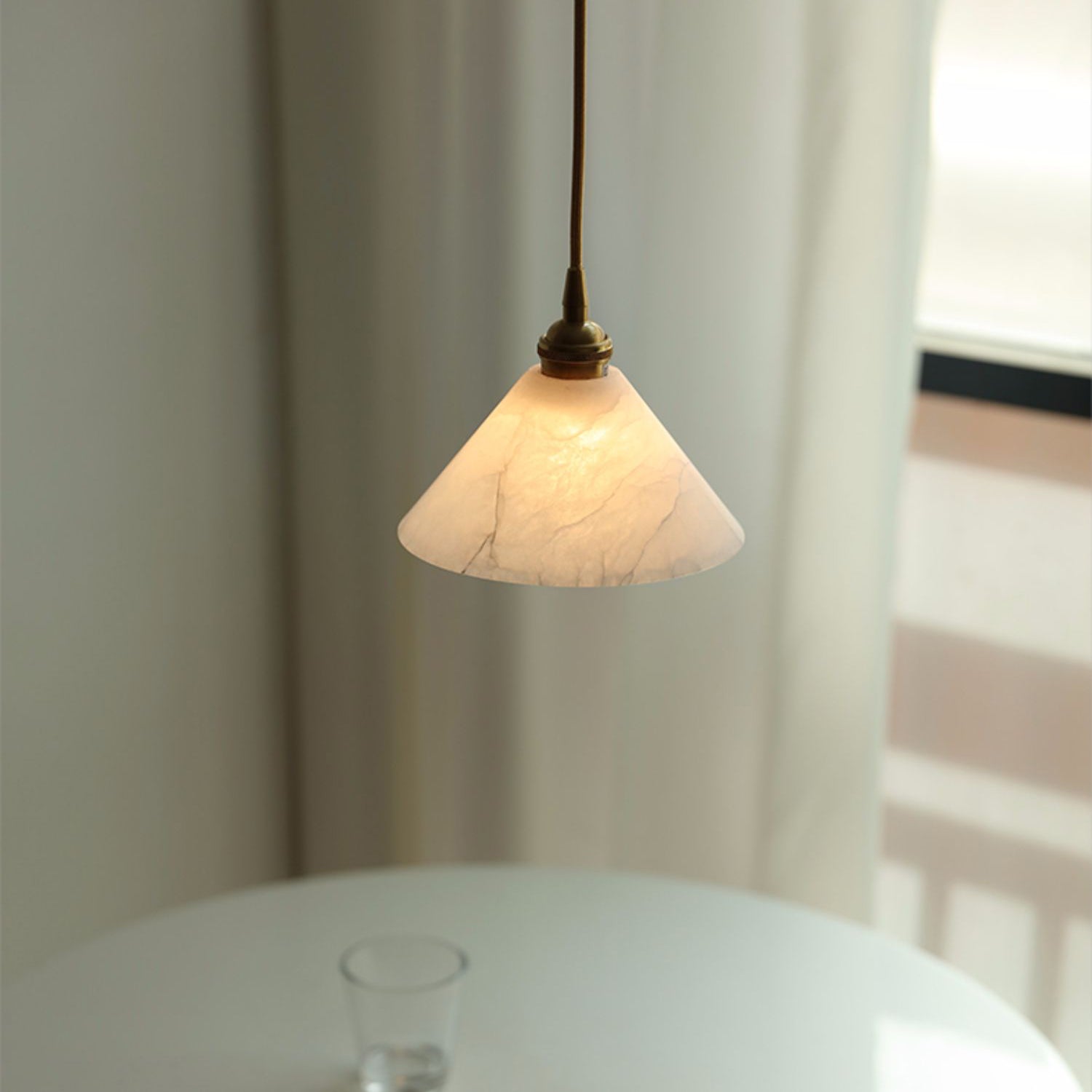 Tämä jousitus, joka on saanut inspiraationsa entisistä keittiön valaisimista, on työstetty pienintä yksityiskohtaa myöten messinkiviimeistelyllä. Sen lampunvarjostin on valmistettu alabasterista, jaloimmasta valaistusmateriaalista, joka tarjoaa erinomaisen visuaalisen mukavuuden ja täydellisen valon diffuusion.
