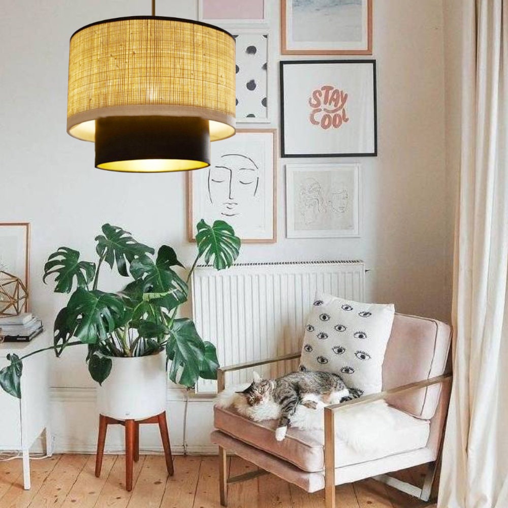 Nykyaikainen musta kattovalaisinvarjostin pellavakankainen kattovalo