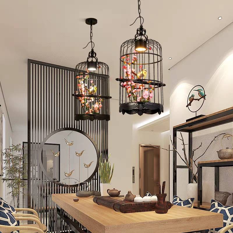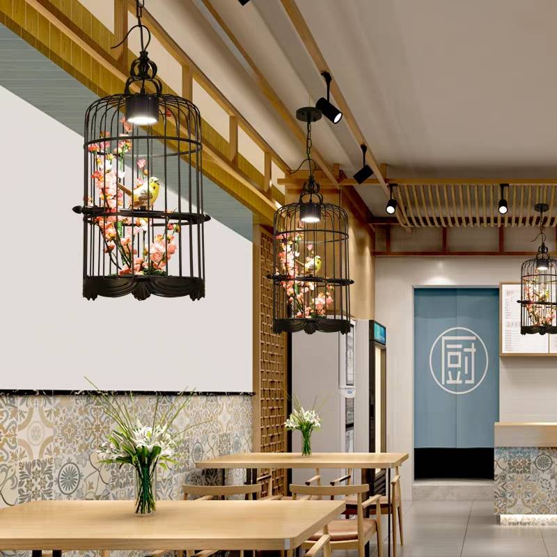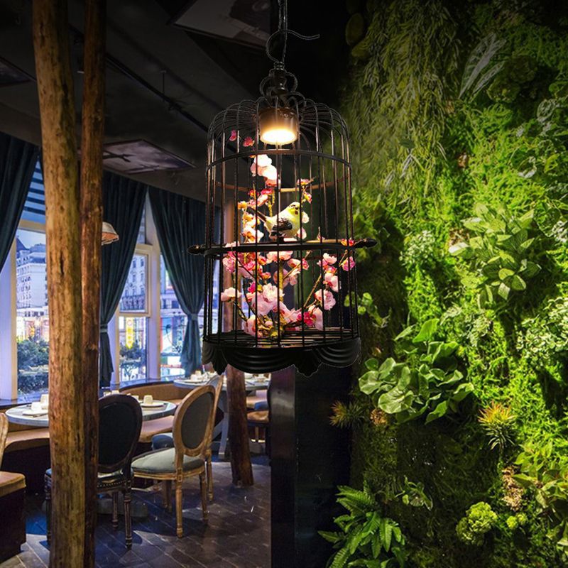 Cooley Art Deco -lintuhäkki metalliriippuvalaisin, musta
