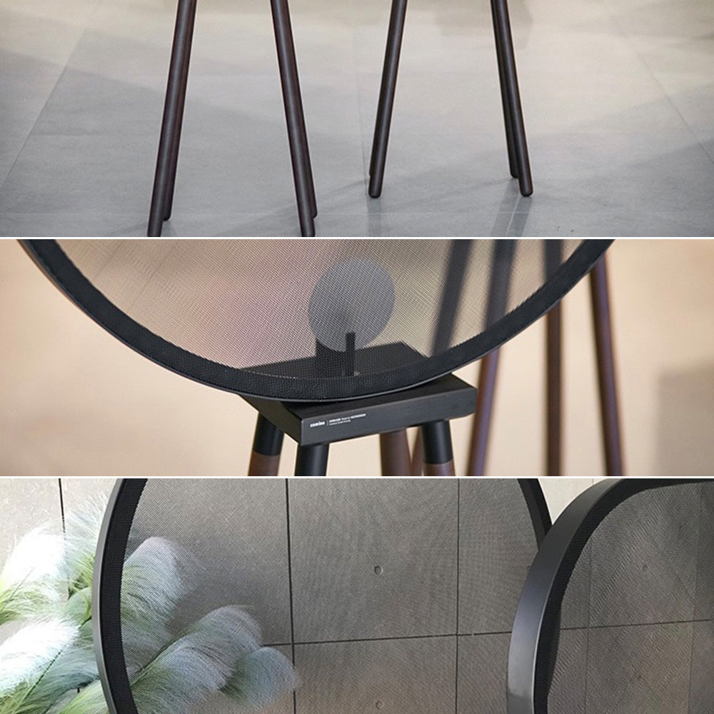 - Tämä minimalistinen lattiavalaisin on valmistettu ympäristöystävällisestä puusta ja musta lisää varjostimen sameutta