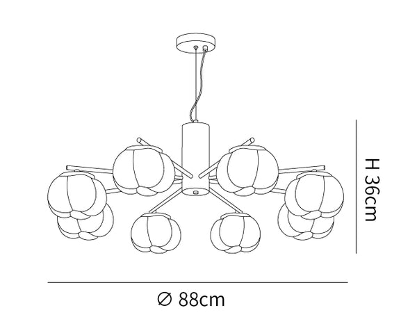8 Lamppujen koko: Halkaisija 88 cm x K 36 cm / ∅ 34,6" x K 14,2"