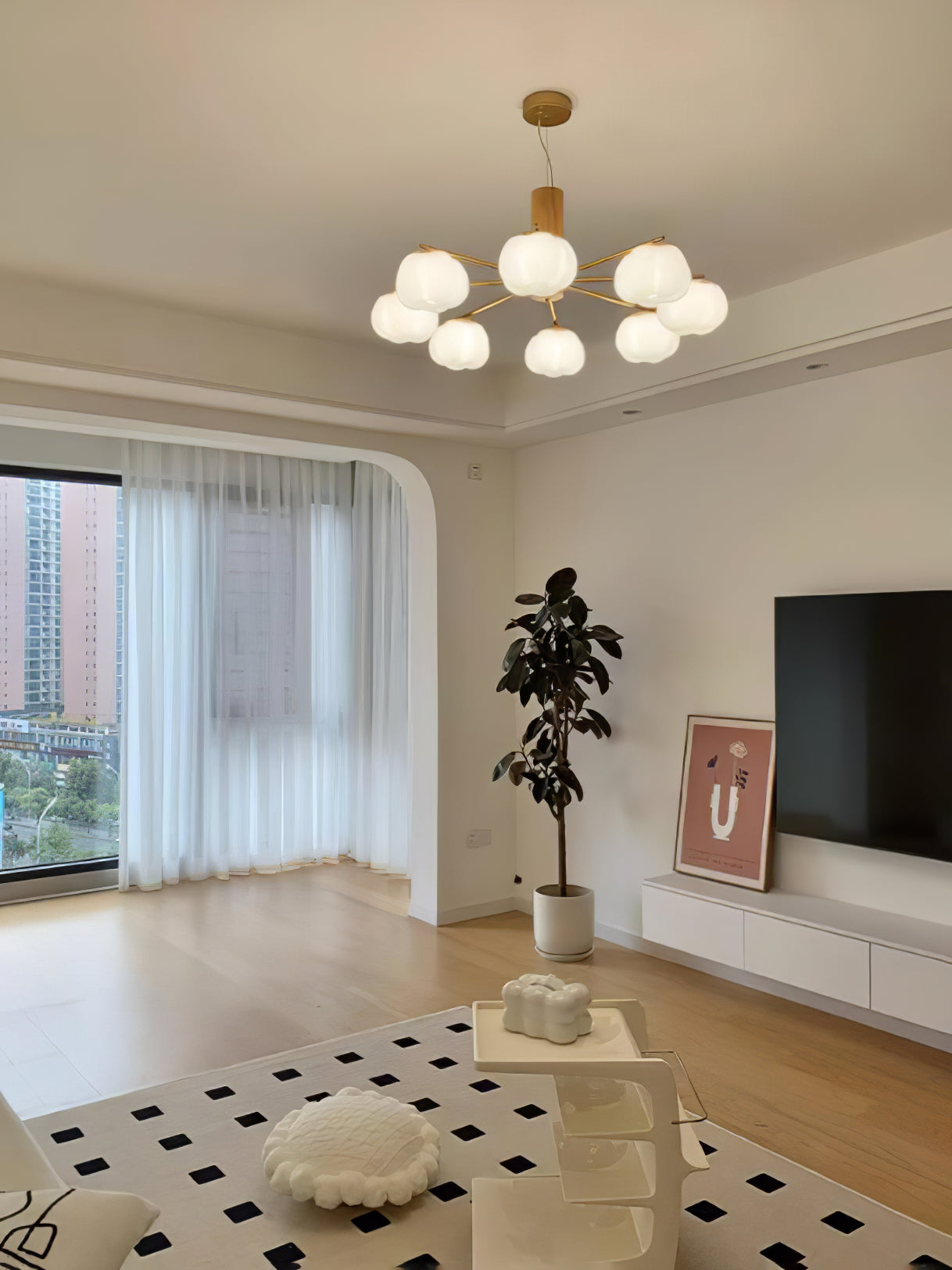 Cotton Balls -kattokruunu korottaa kaikkia huoneita tyylikkäällä muotoilullaan. Tämä kultametallista ja valkoisesta akryylista valmistettu kattokruunu luo lämpimän ja kutsuvan tunnelman. Sen moderni muoto ja minimalistinen ulkoasu tarjoavat tyylikkään lisän mihin tahansa tilaan.