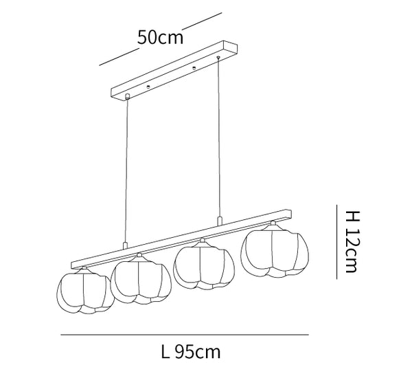 4 Lamppujen koko: L 95 cm x K 12 cm / P 37,4″ x K 4,7″