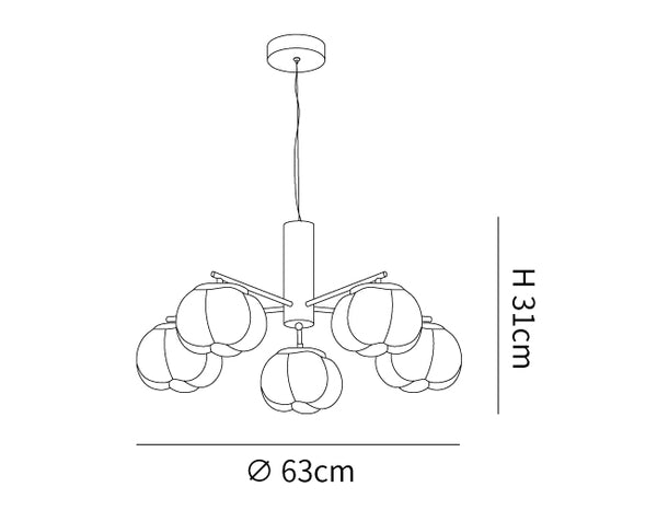 5 Lamppujen koko: Halkaisija 63 cm x K 31 cm / ∅ 24,8" x K 12,2"