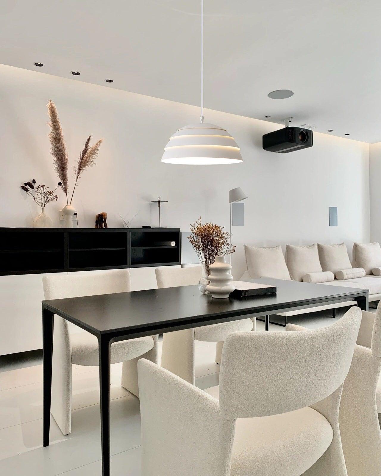 Tämä viehättävä riipus tuo ripaus glamouria ja hienostuneisuutta teollisen inspiraation saamiin huoneisiin. lisää visuaalisesti kiinnostavia kerroksia rennolla tunnelmalla, ja valkoiset ja mustat aksentit yhdistävät tämän ilmeen hienostuneella tavalla