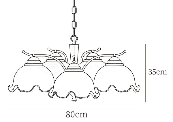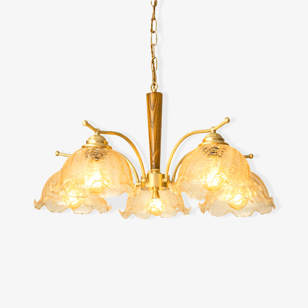 Pariisilaisten kahviloiden romanttisten treffien ilmapiirin innoittamana tämä kattokruunu lumoaa kenet tahansa eleganssillaan. Kuten kukkasuput, jotka kukkivat ohuilla messinkivarsilla, halkeilevat kukkavarjostimet hajottavat valoa tehden siitä pehmeän ja miellyttävän silmälle. Kauniit pyöristetyt muodot ja harmoniset värit saavat tämän valaisimen näyttämään esteettisesti miellyttävältä.
