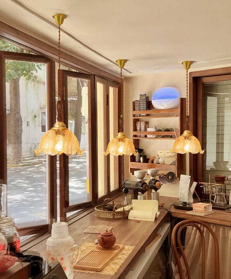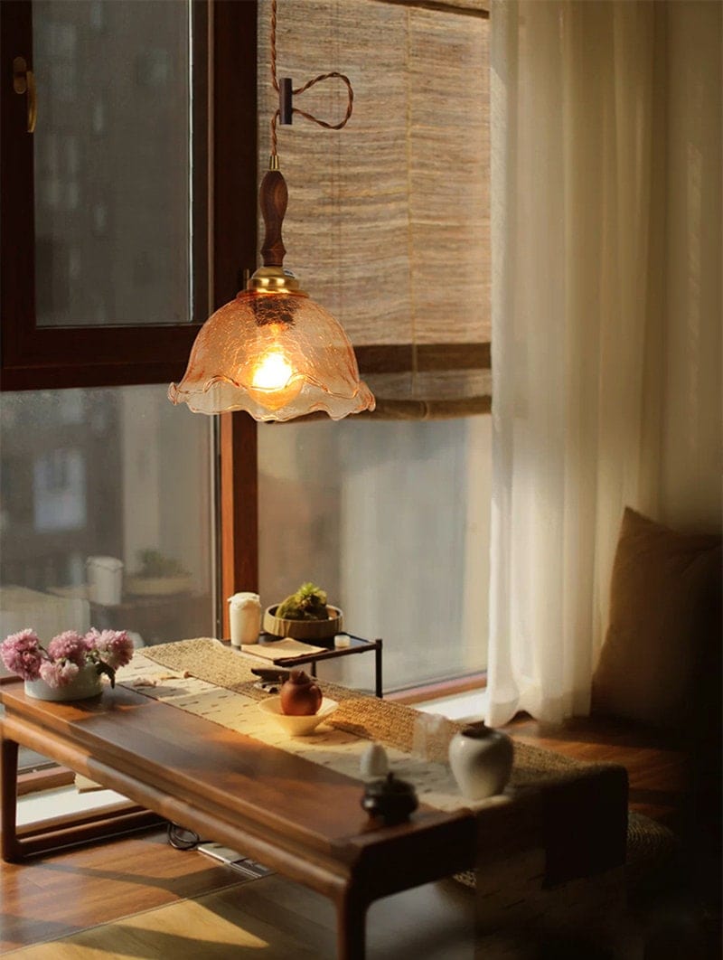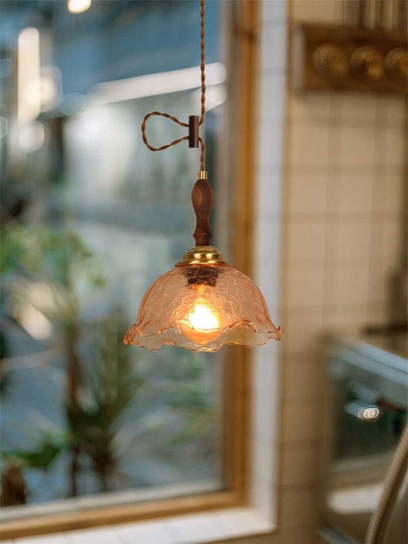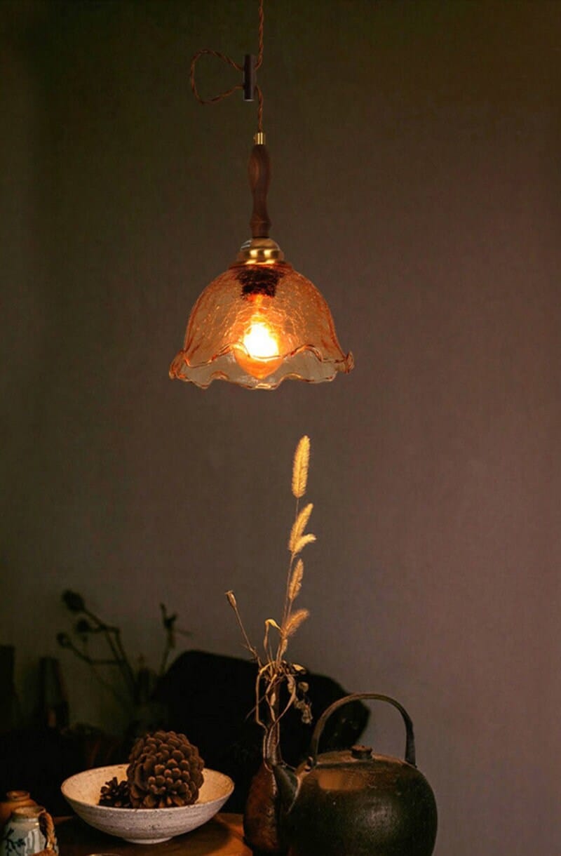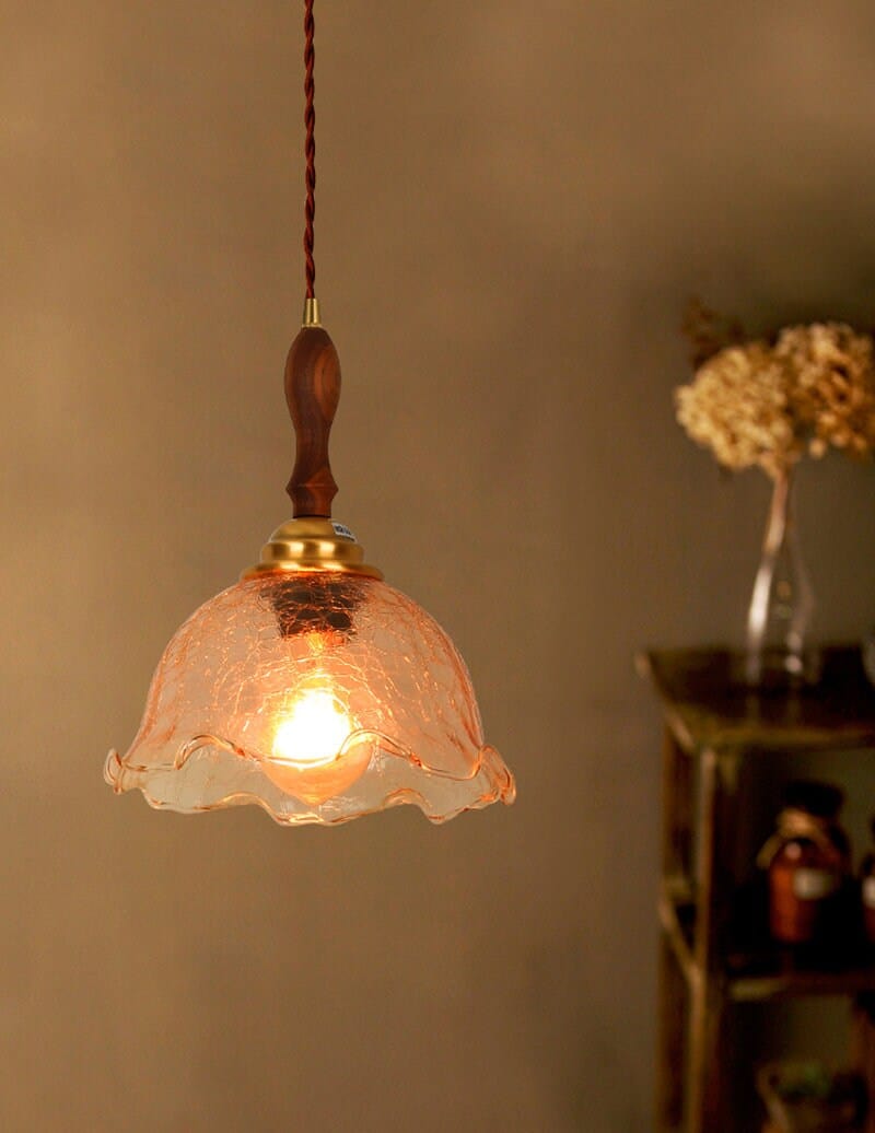 Säröillä oleva teelasiriippuva LED-valo puisella kahvalla vintage-tyyliin - Faredecor