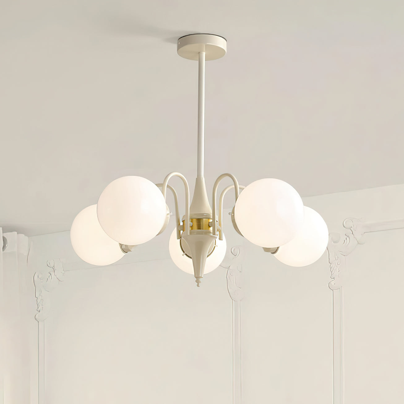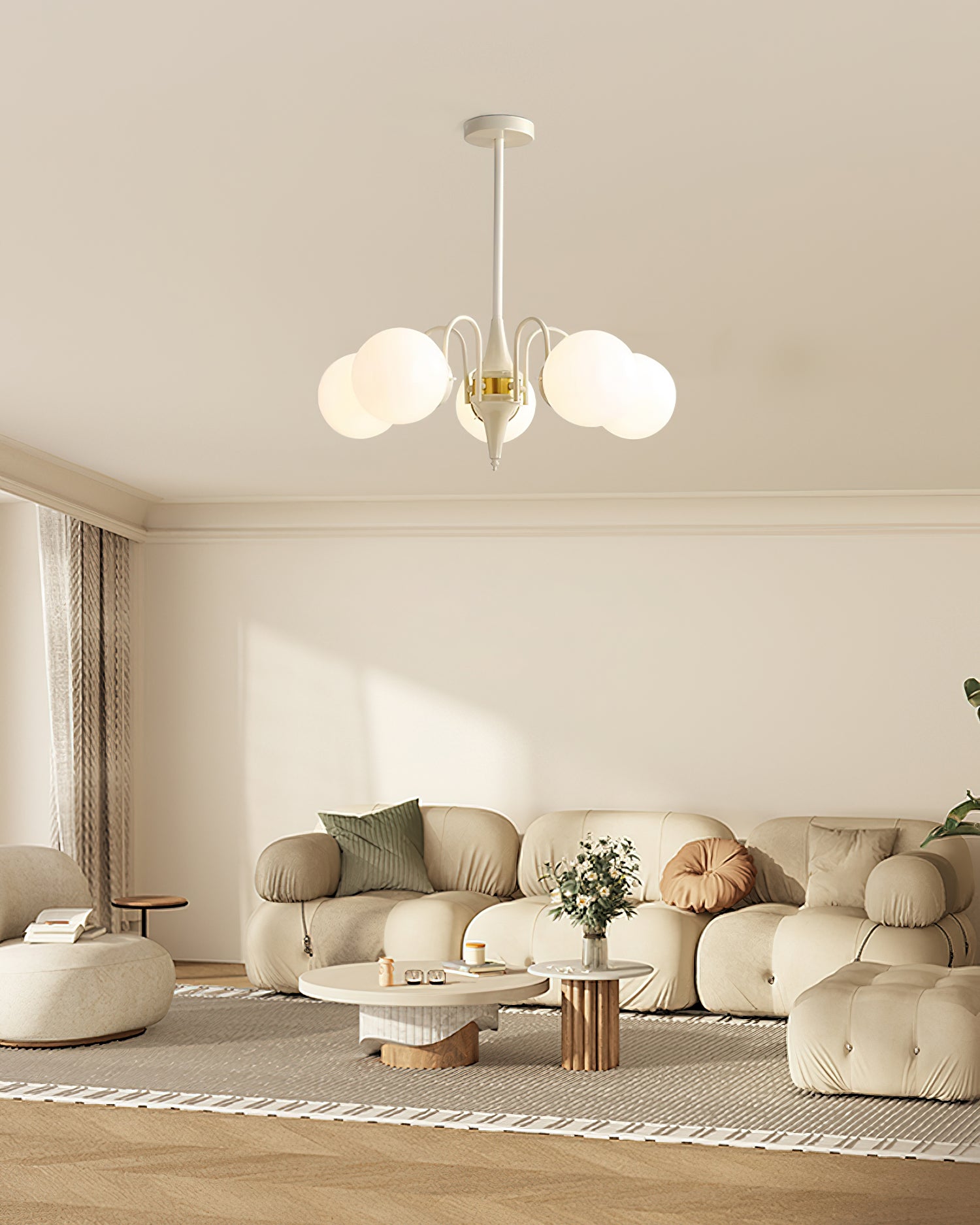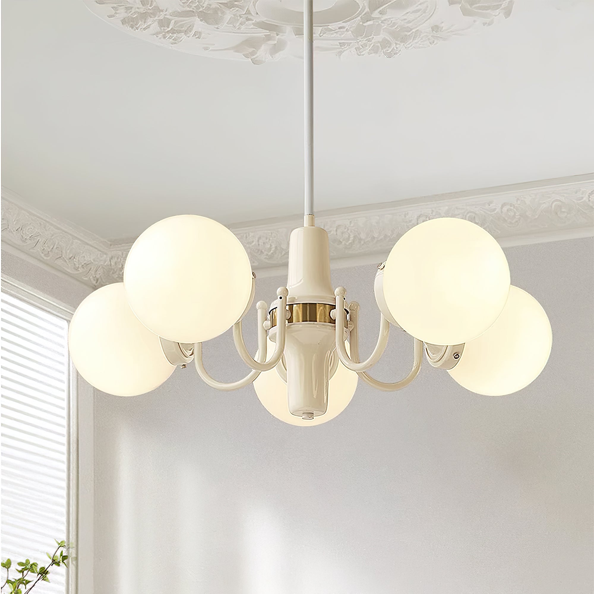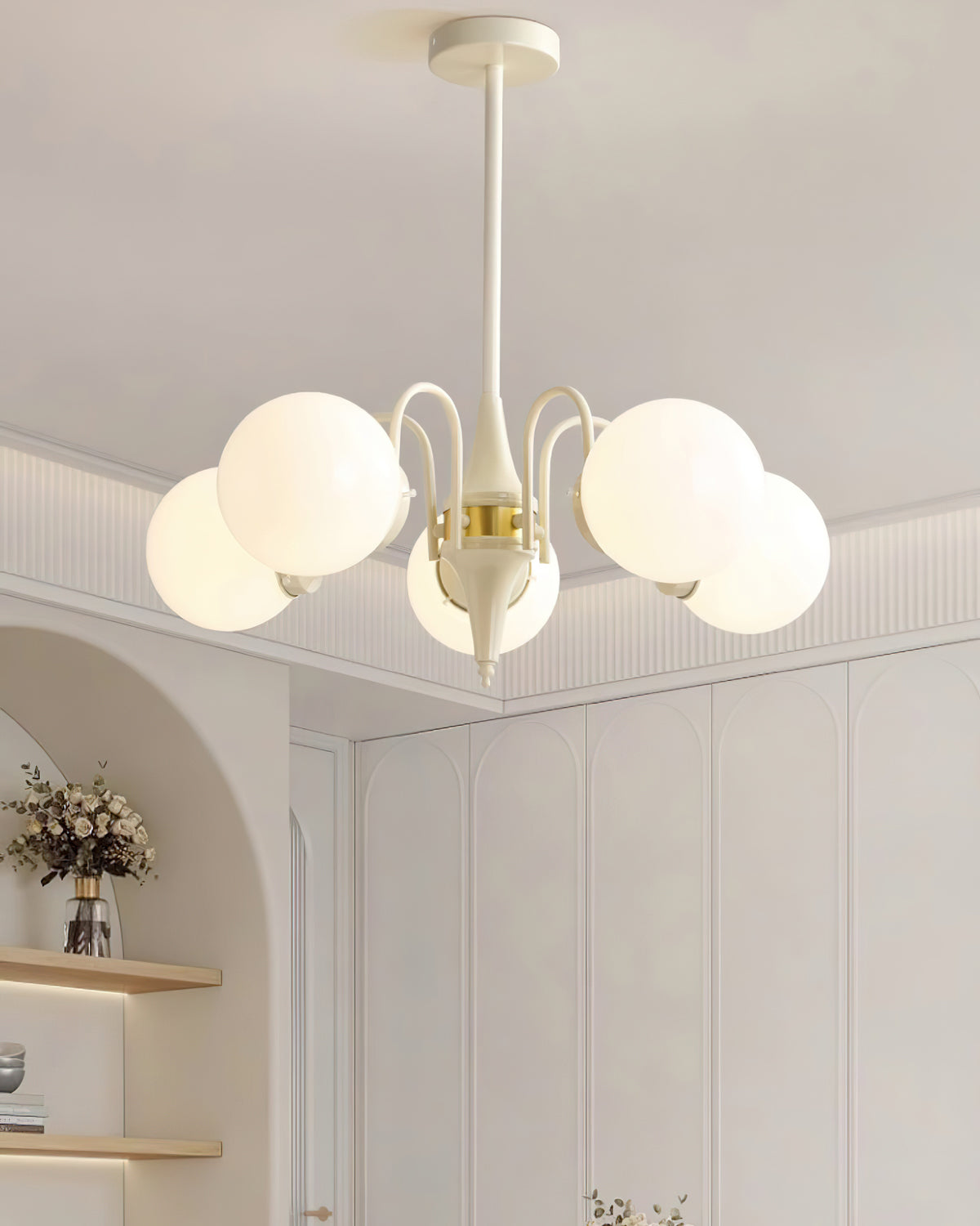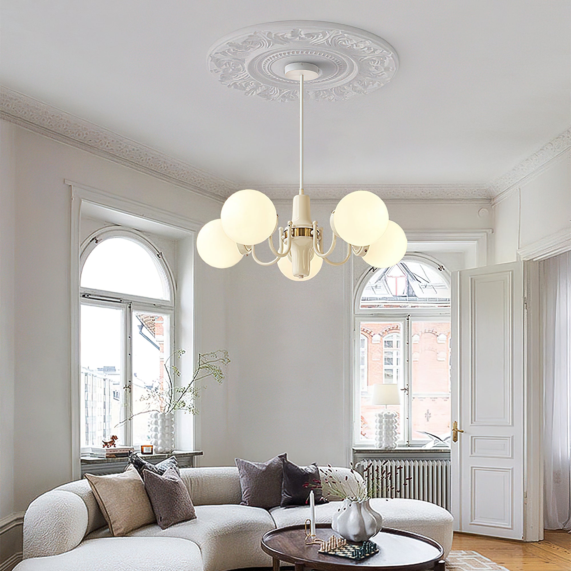 Tässä Cream Ball -kattokruunussa on tyylikäs kermanvärinen väripaletti ja valkoinen lasikuulavarjostin, joka luo raikkaan ja modernin ilmeen. Lasipallovarjostin tarjoaa pehmeän, tunnelmaa parantavan valaistuksen mihin tahansa tilaan. Lisää ripaus eleganssia kotisi sisustukseen tällä korkealaatuisella kattokruunulla.
