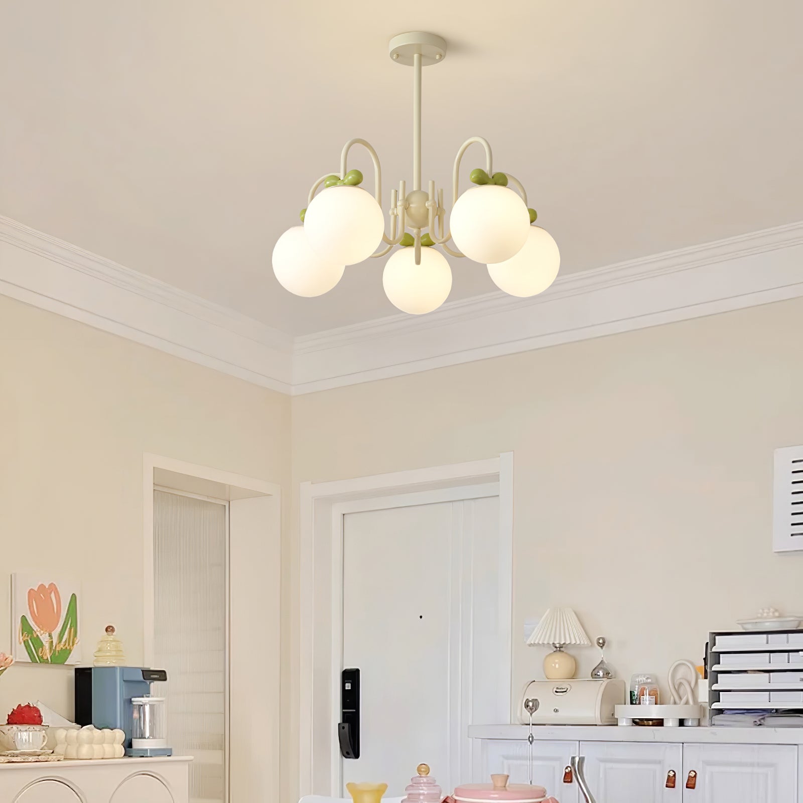 Tämä kermainen kirsikkakruunu on täydellinen lisä jokaiseen kotiin. Ainutlaatuisen kermakirsikkasuunnittelun ansiosta se tarjoaa laadukasta valaistusta ja luo lämpimän tunnelman mihin tahansa huoneeseen. Kaunis ja ajaton lisä mihin tahansa sisustukseen.