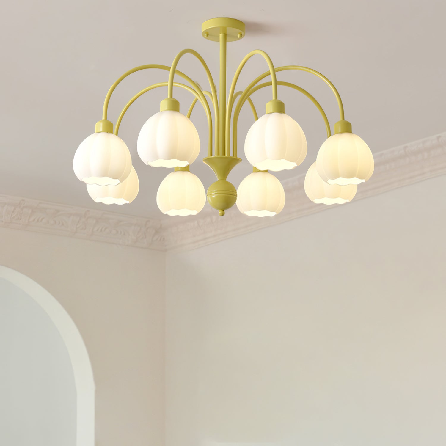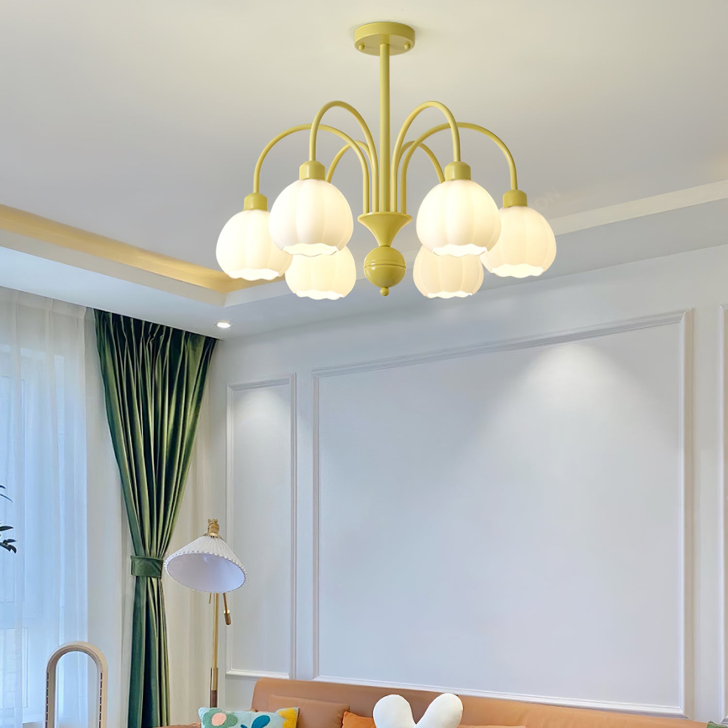 Tämä Cream Pumpkin Ball -kattokruunu lisää hienostuneisuutta mihin tahansa huoneeseen. Sen moderni muotoilu sisältää 4/5/6/8 kermaisia kurpitsan muotoisia lasipalloja, jotka on järjestetty tyylikkäästi ympyrään keskimmäisen metallikehyksen ympärille. Täydellinen olohuoneisiin, makuuhuoneisiin, käytäviin ja muihin.