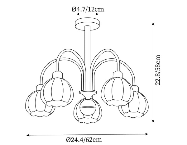 5 pään koko: Halkaisija 62 cm x K 58 cm / ∅ 24,4″ x K 22,8″