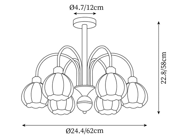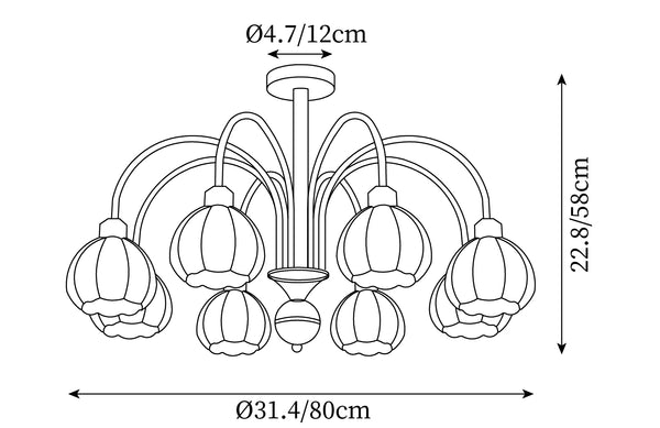 8 pään koko: Halkaisija 80 cm x K 58 cm / ∅ 31,4″ x K 22,8″
