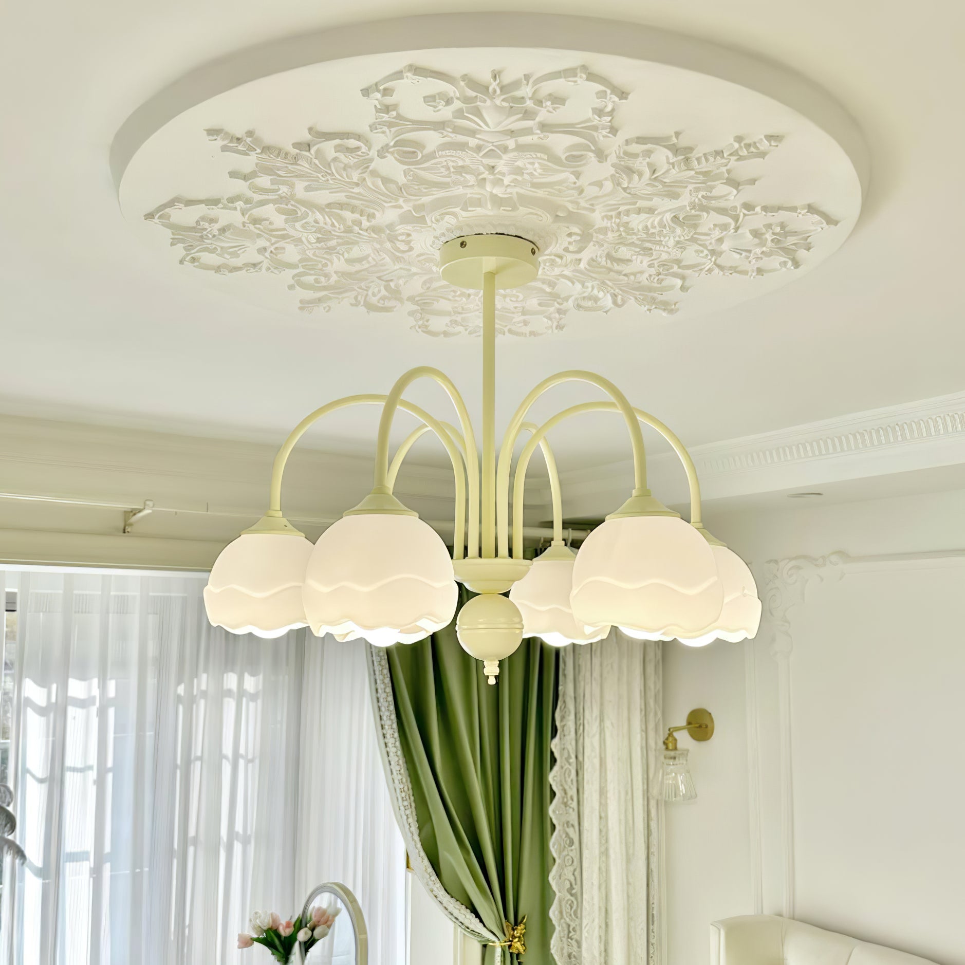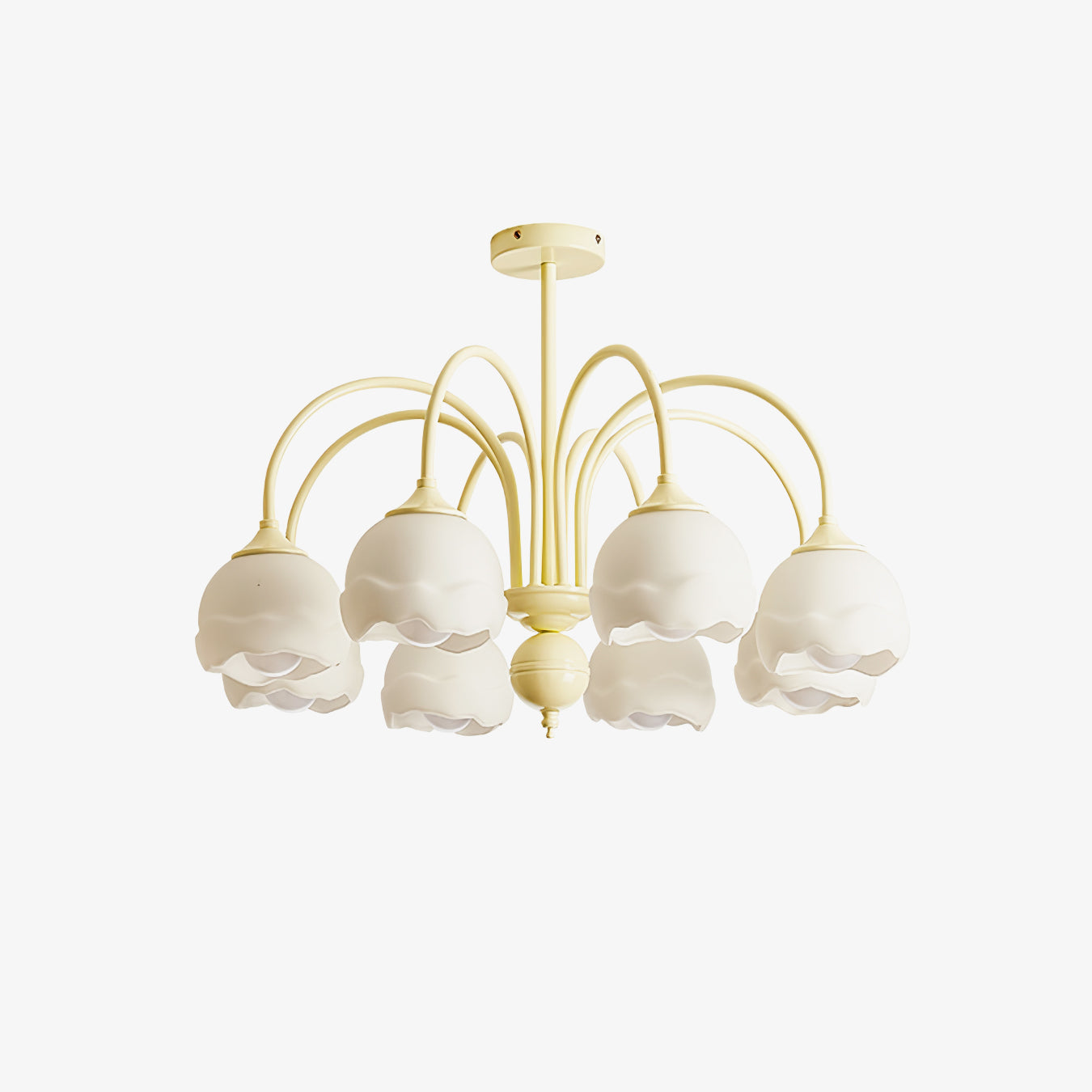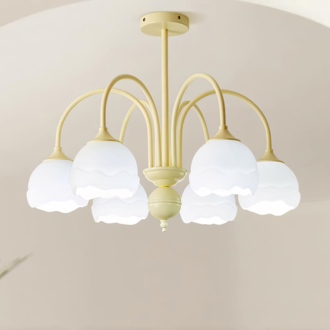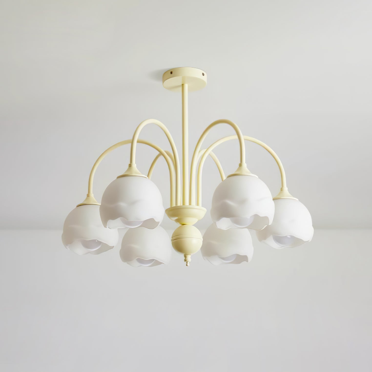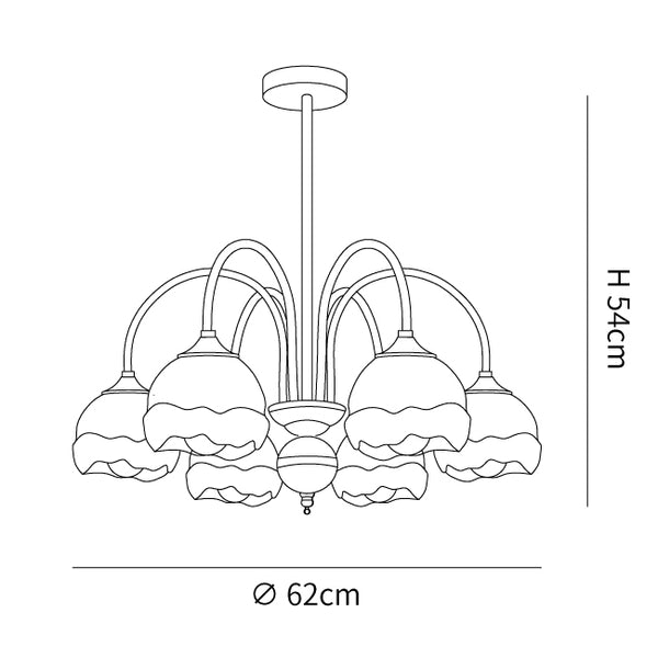 Creamy Chandelier on moderni ja tyylikäs lisä jokaiseen huoneeseen. Siinä on kerman ja valkoisen sulatettu lasivarjostin, joten se on taatusti ilmeinen. Nauti muodin inspiroiman valon lempeästä hehkusta, joka tarjoaa nykyaikaista kosketusta asuintilaasi.