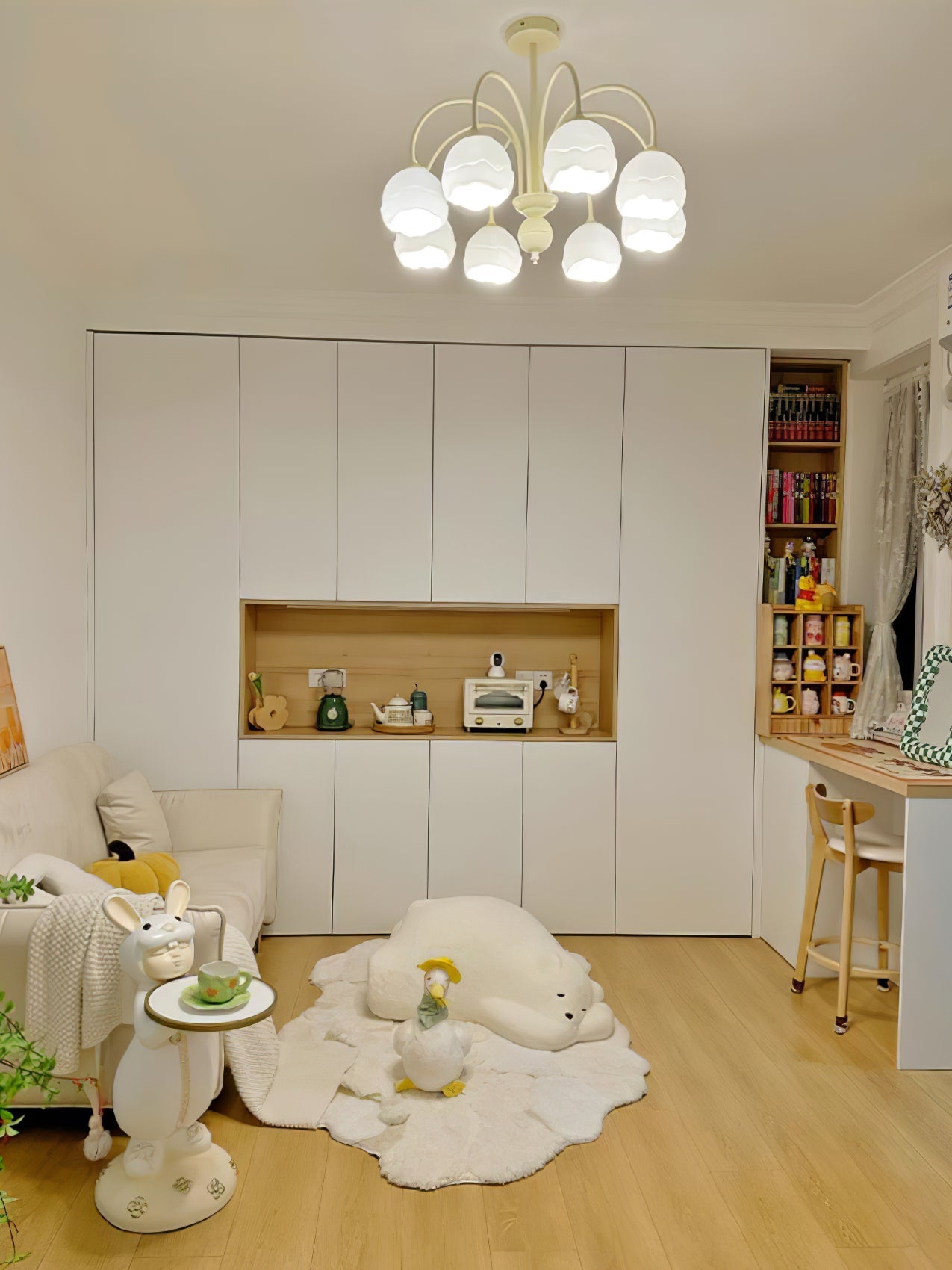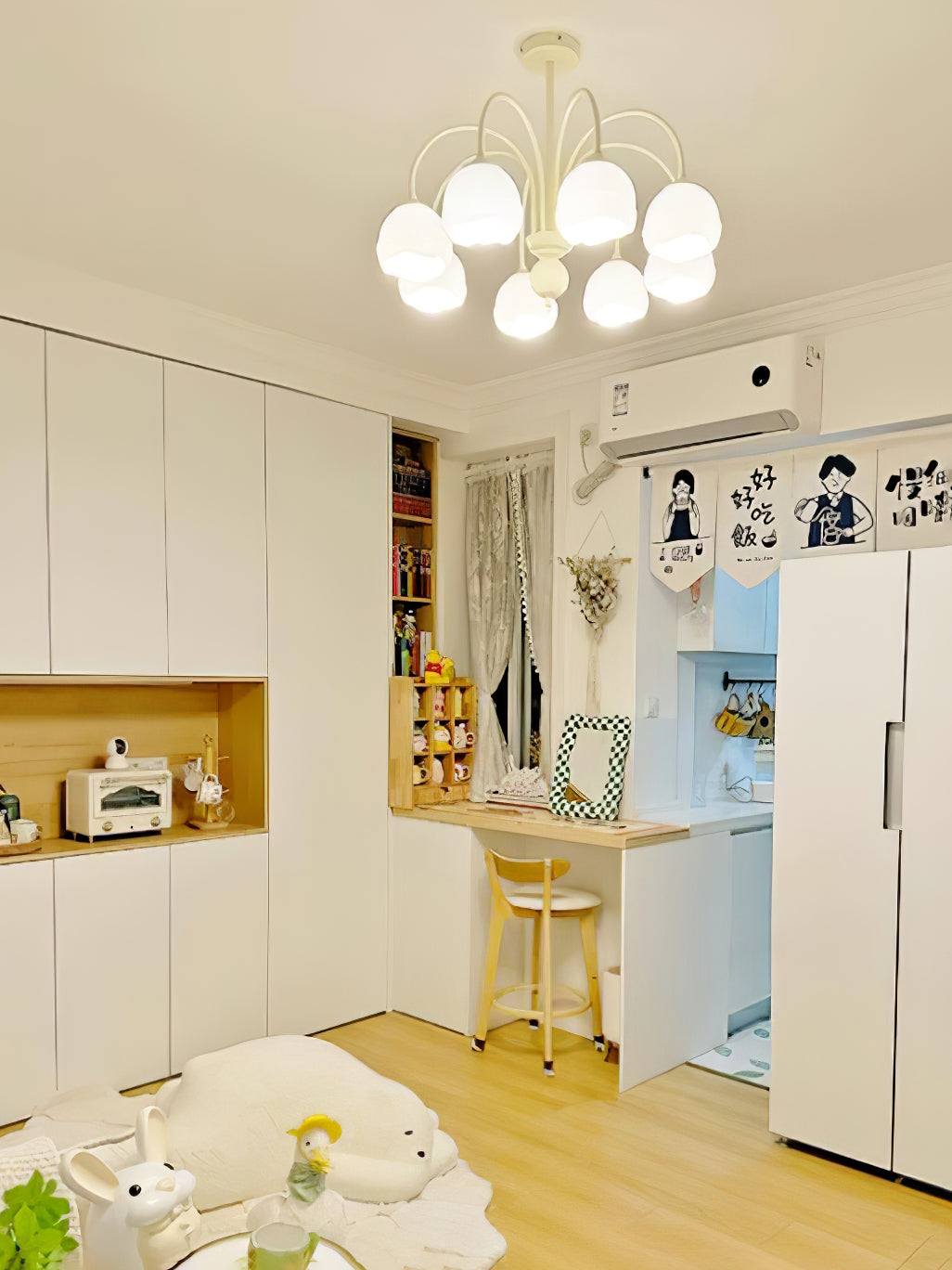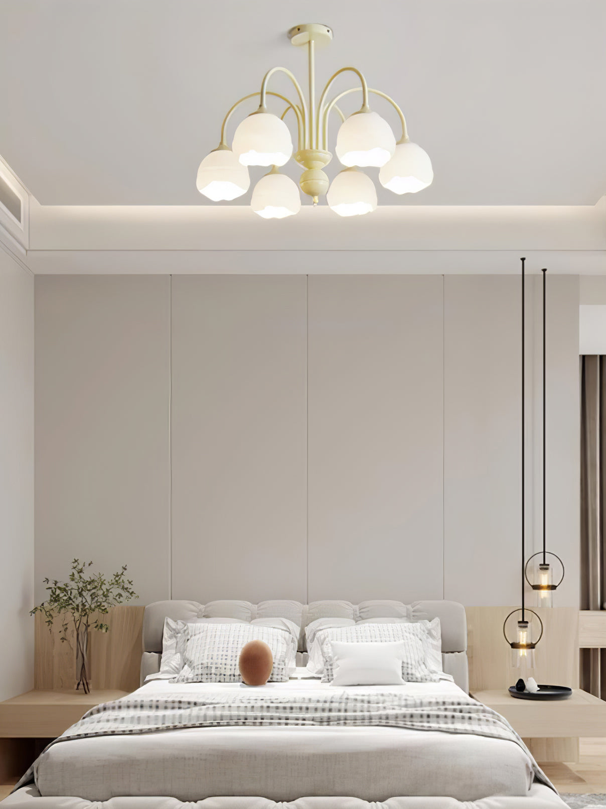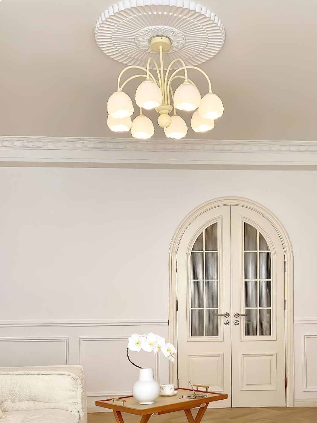 Creamy Chandelier on moderni ja tyylikäs lisä jokaiseen huoneeseen. Siinä on kerman ja valkoisen sulatettu lasivarjostin, joten se on taatusti ilmeinen. Nauti muodin inspiroiman valon lempeästä hehkusta, joka tarjoaa nykyaikaista kosketusta asuintilaasi.