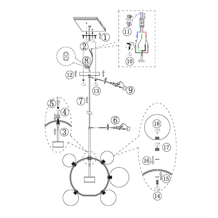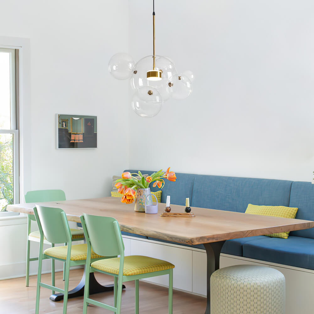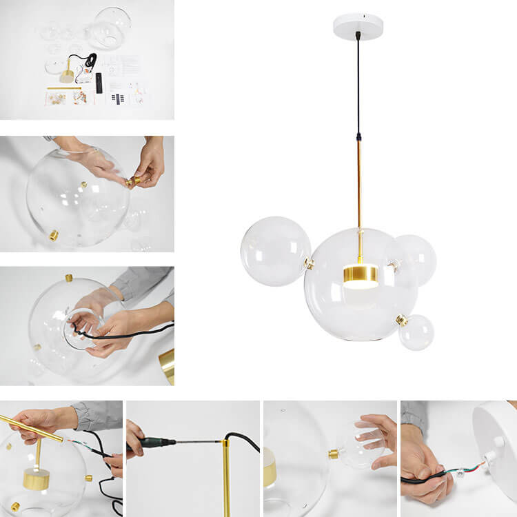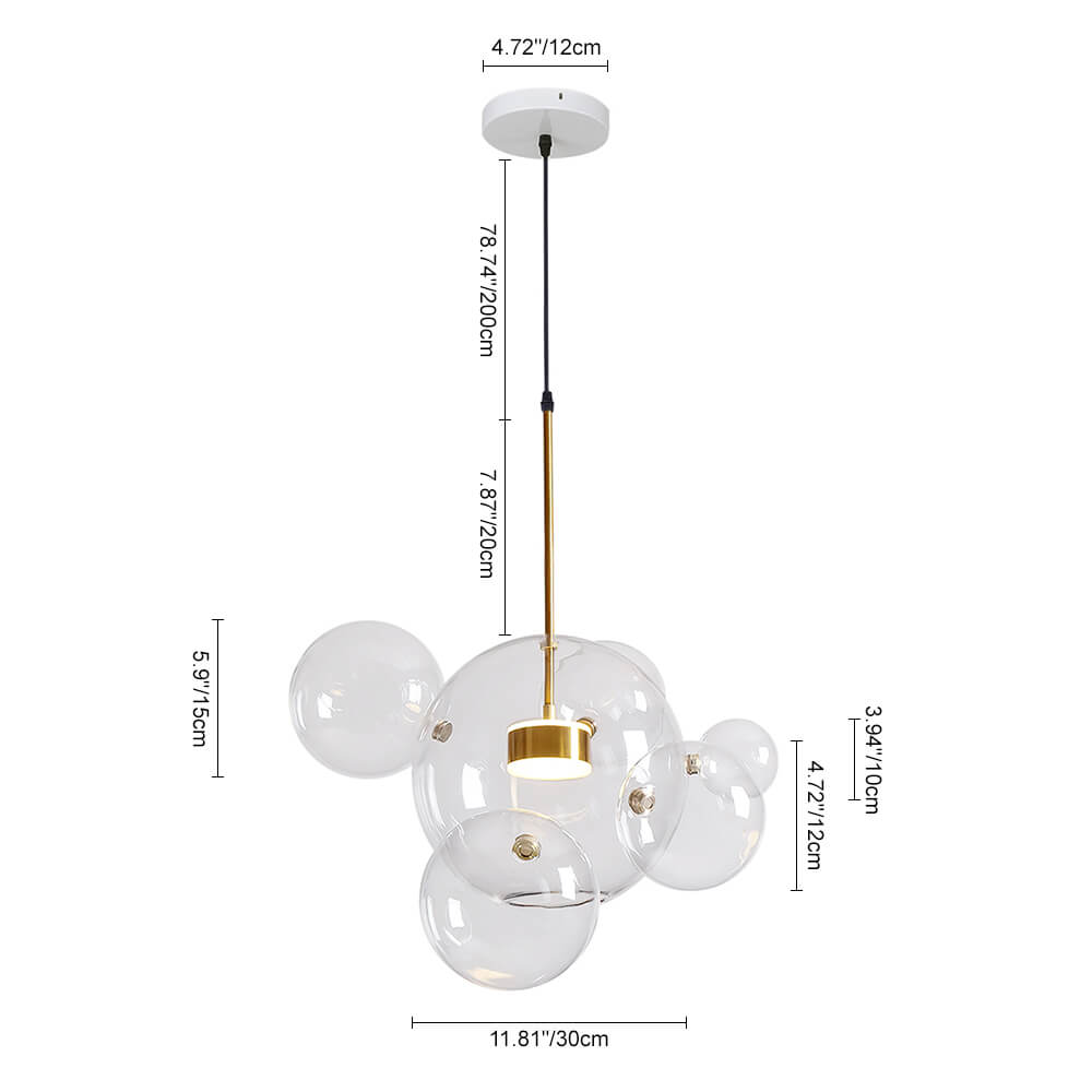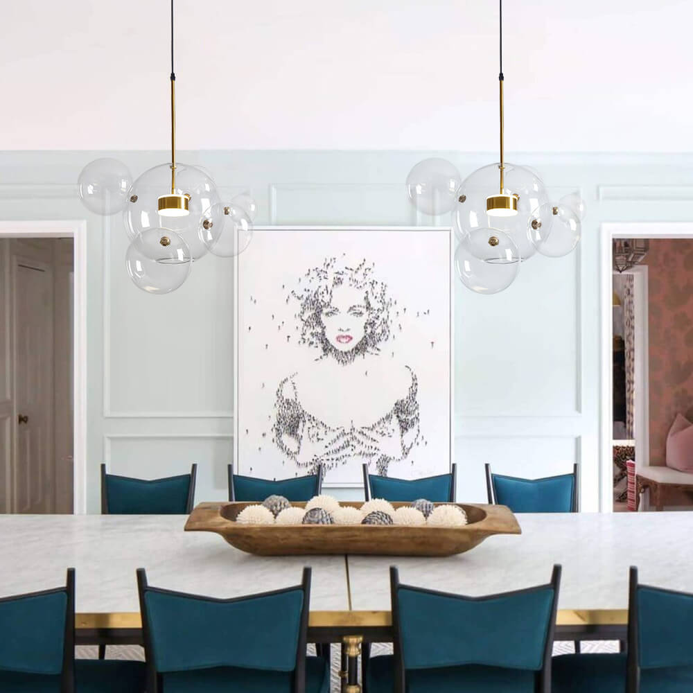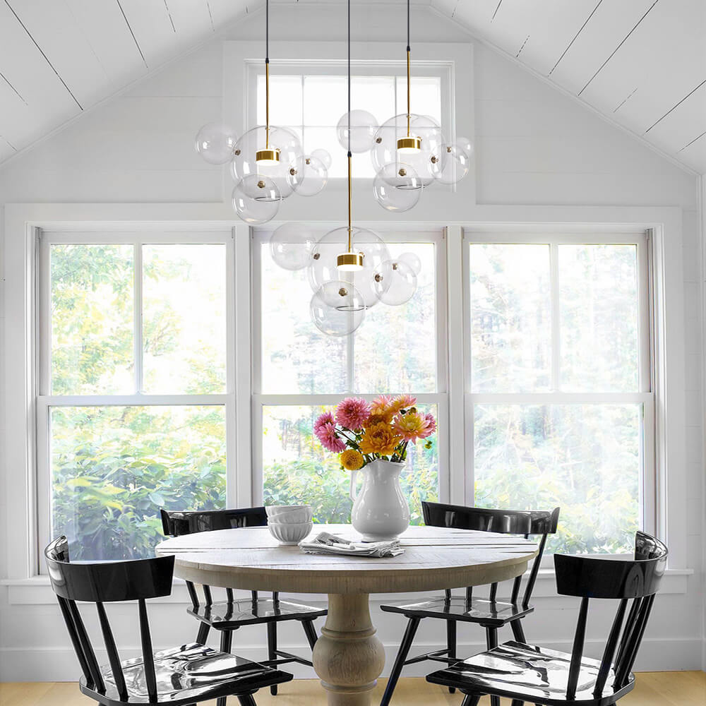 Luova kuplavaikutteinen lasipallokruunu on suosittu valinta, kun haluat tuoda kotiisi kirkkaan tunnelman satukohtauksella. Suuri kirkas lasipallo, joka on koristeltu 3 tai 5 pienemmällä lasipallolla, on keskeisellä paikalla korostamassa tätä kuplakruunua. Sisäänrakennetun LED-moduulin (mukana) sisällä tämä lasipallonen riippuvalaisin nauttii pitkästä käyttöiästä (45 000 tuntia) ja säteilee yllättävän riittävästi valaistusta koko huoneeseen. Lisäksi tämä lasipallomainen riippuvalaisin voi tarjota himmeää valaistusta mukana tulevalla kaukosäätimellä. Koska tämä lasipallomainen riippuvalaisin on varustettu säädettävällä kaapelilla ja kaltevaa kattoa tukevalla katoksella, se toimii hyvin useimmissa asennussovelluksissa. Suosittelemme ripustamaan tämän luovan kuplan inspiroiman lasipallokruunun, joka on täynnä toimintoja raikkaalla ja modernilla tyylillä valaisemaan olohuonettasi, ruokailuhuonettasi, makuuhuonettasi ja keittiösaarekettasi.