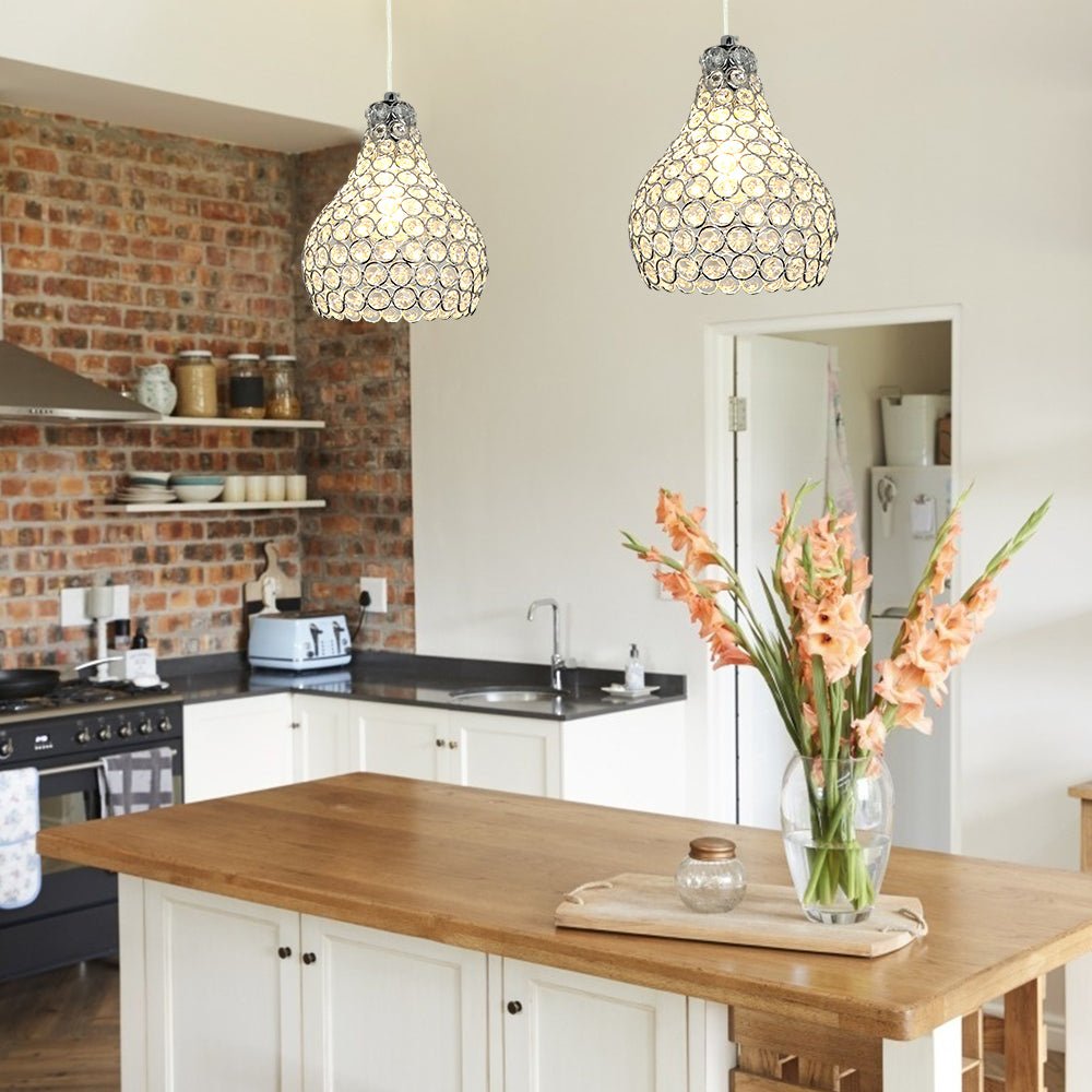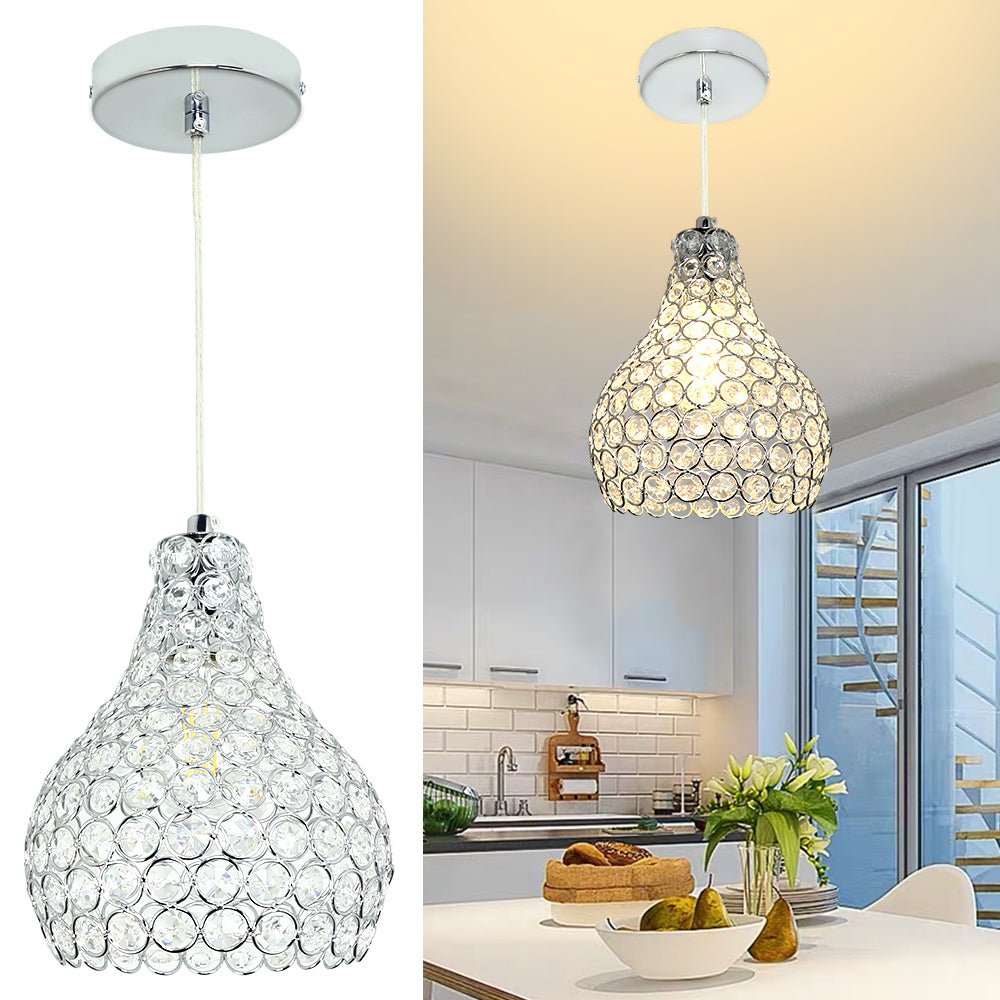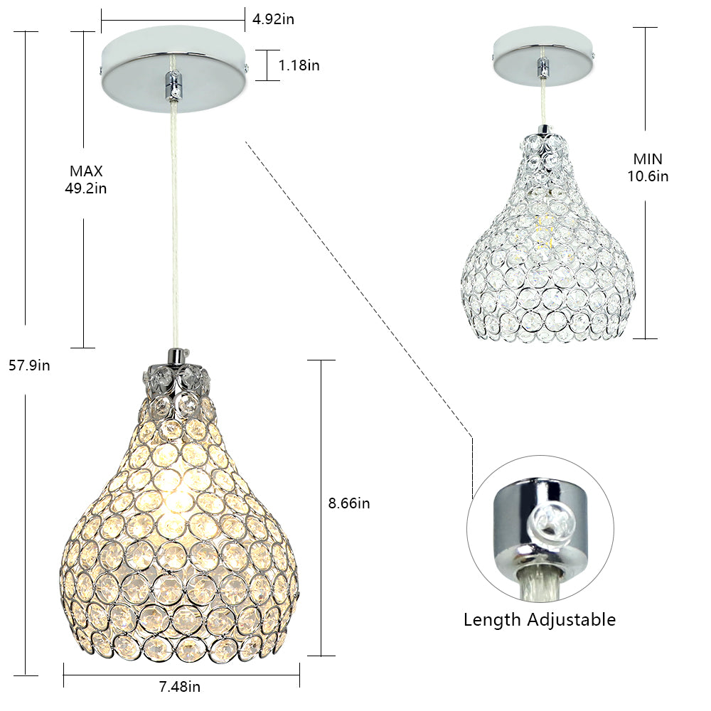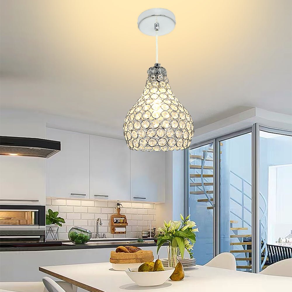 Depuley Crystal -riippuvalaisin, moderni säädettävä riippuvalaisin, kyynelkruunu keittiösaaren ruokasaliin, makuuhuoneen eteiseen, 1 kevyt kromimaali, jalokivikulho