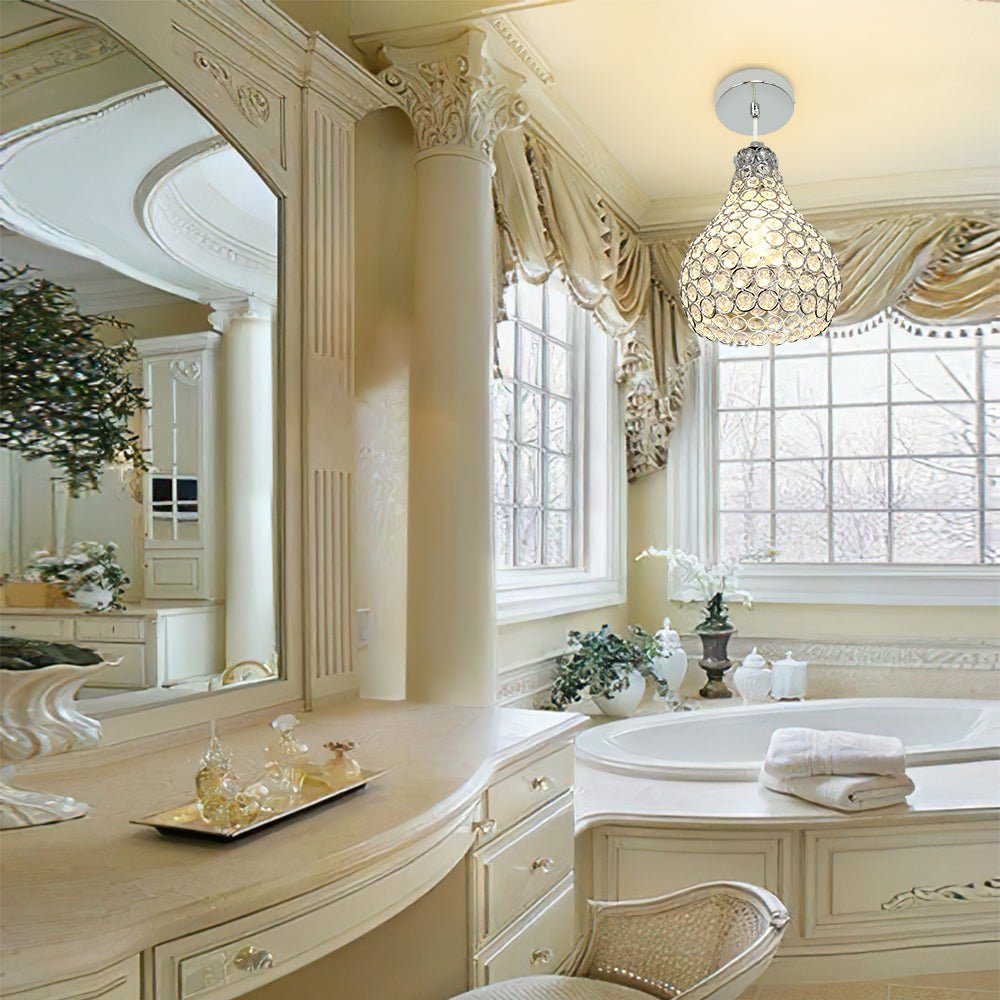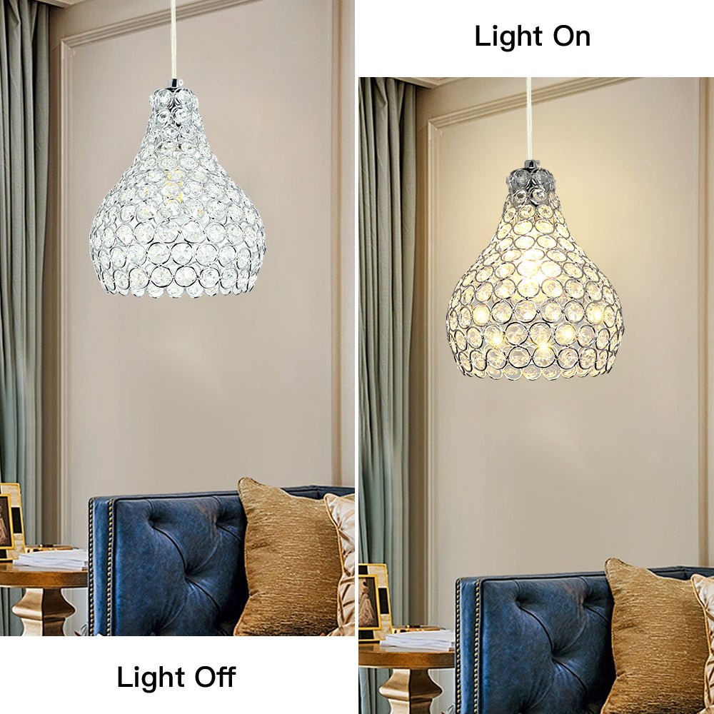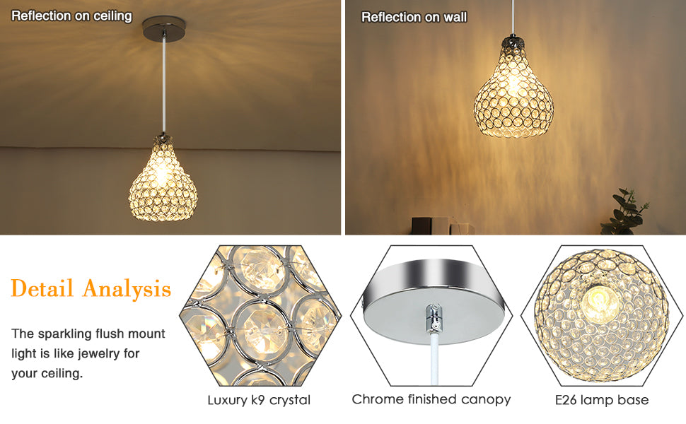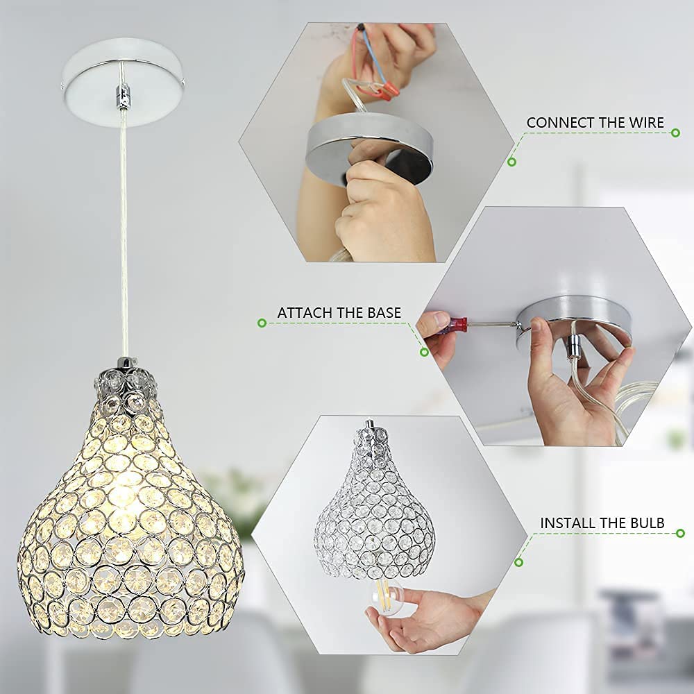 Depuley Crystal -riippuvalaisin, moderni säädettävä riippuvalaisin, kyynelkruunu keittiösaaren ruokasaliin, makuuhuoneen eteiseen, 1 kevyt kromimaali, jalokivikulho
