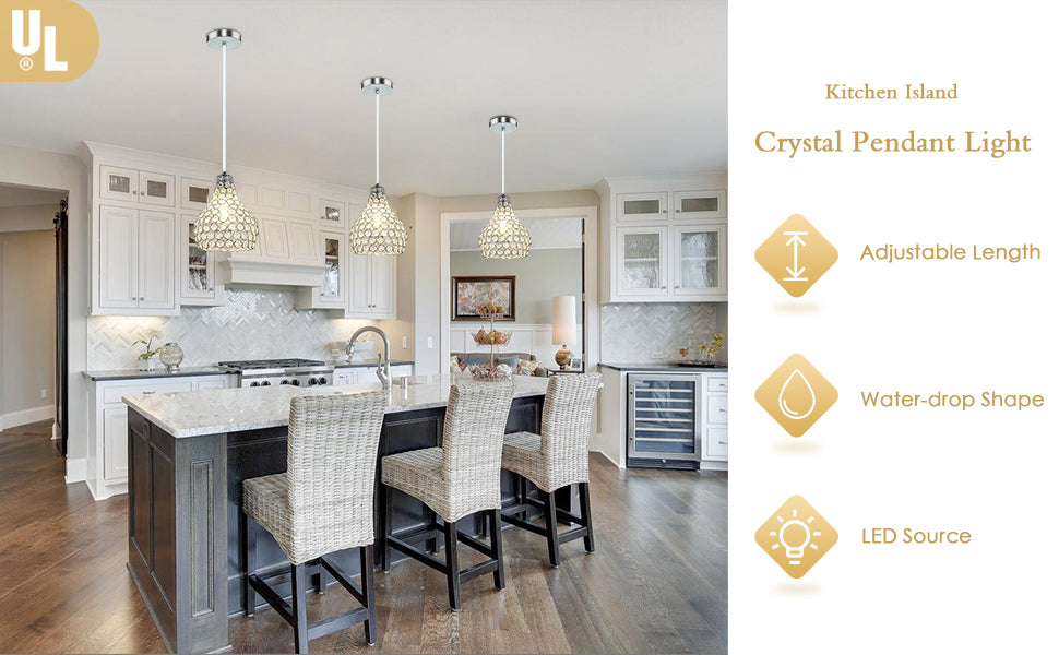 DINGLILIGHTING Kristalliriippuvalaisin, moderni säädettävä riippuvalaisin, kyynelkruunu keittiösaaren ruokasaliin makuuhuoneen eteiseen, 1 vaalea kromimaali, jalokivikulho