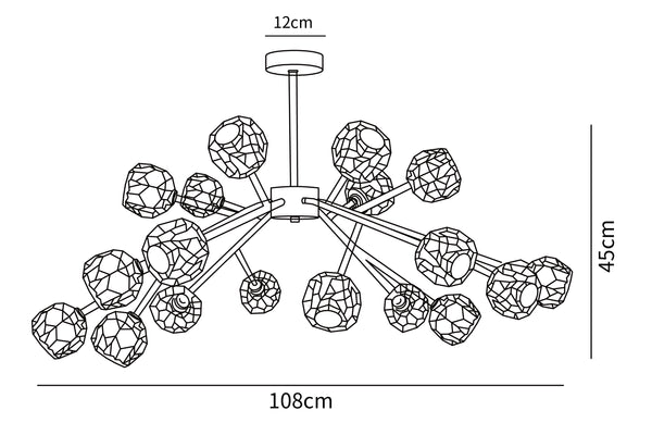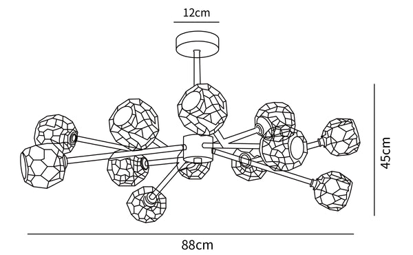 Jokaisen kappaleen tarkat mitat ja kulmat levittävät ja heijastavat valoa ympäri huonetta luoden kutsuvan tunnelman. Sijoita ruokapöydän yläpuolelle saadaksesi ylellisen ilmeen. Tai aseta olohuoneen keskipiste ja luo viileä vintage-tunnelma, jolla on loputon suunnittelija vetovoima.