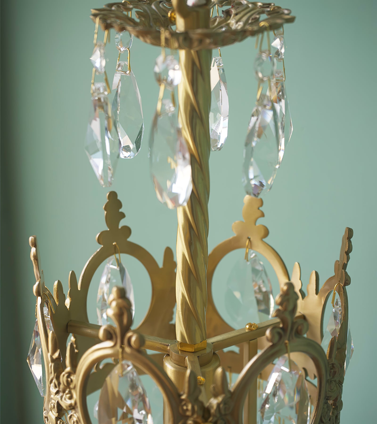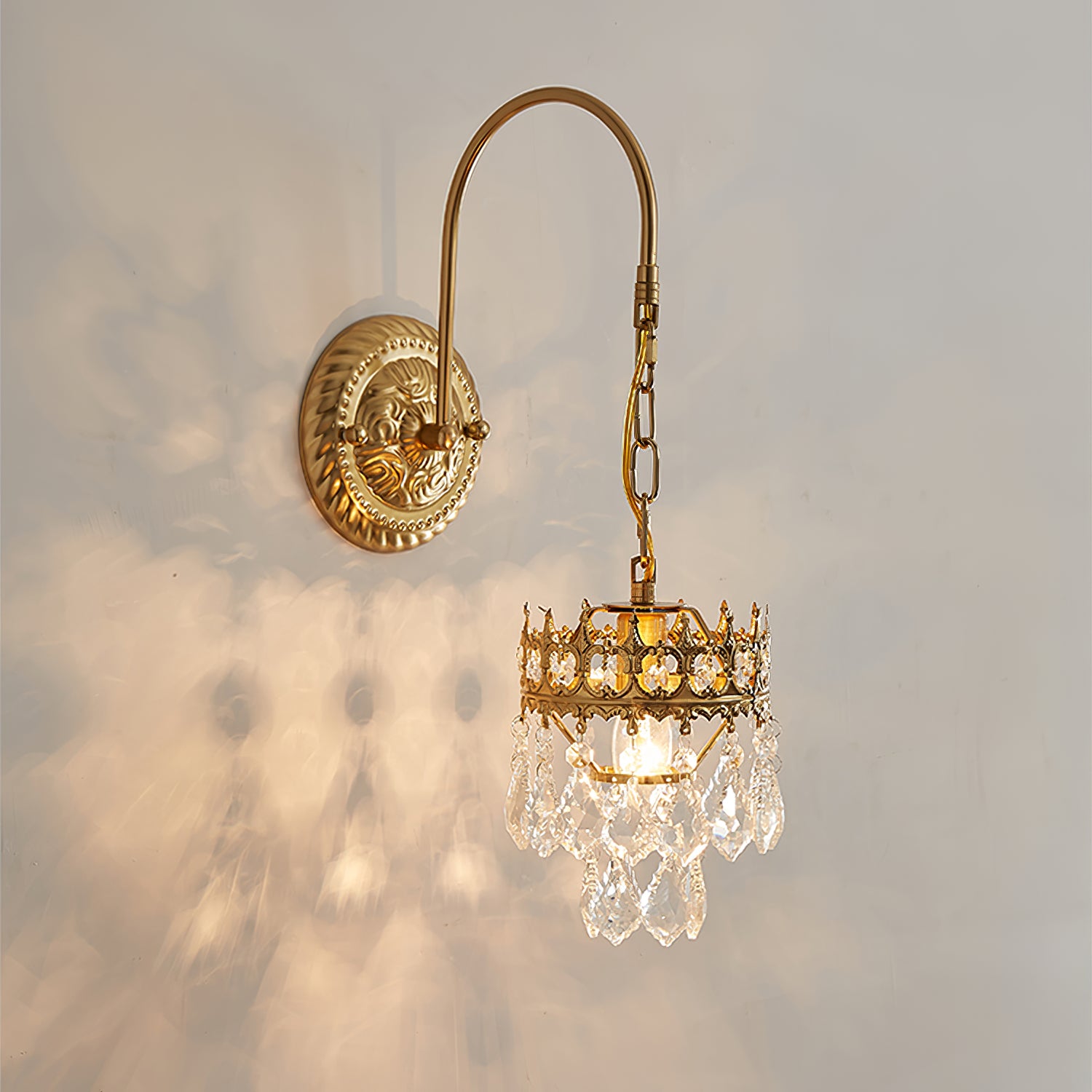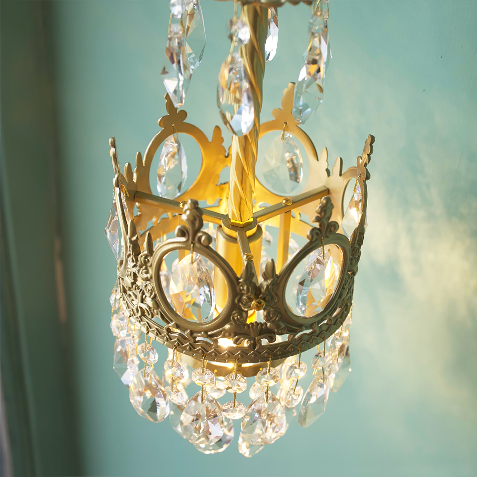 Anna eteiselle, käytävälle tai kylpyhuoneelle kuninkaallinen hoito kristallikruunuvalaisin avulla. Häikäiseviä pisarakristalleja hohtavana hehkuvien valoisten lamppujen keskellä. Kauniisti kaareutuvat päällystetyt käsivarret. Majesteettinen näyttö väriyhdistelmien kaleidoskoopissa.