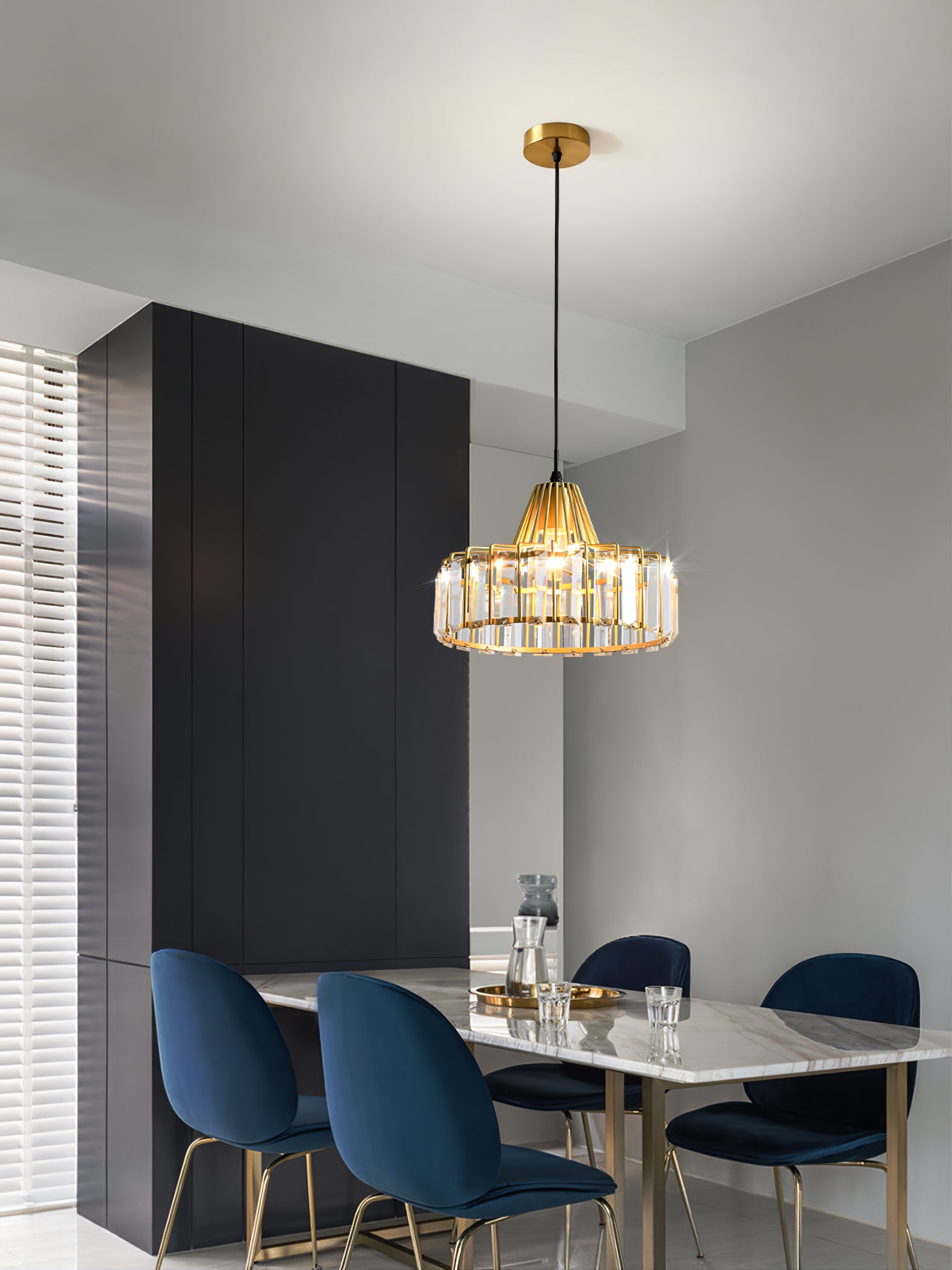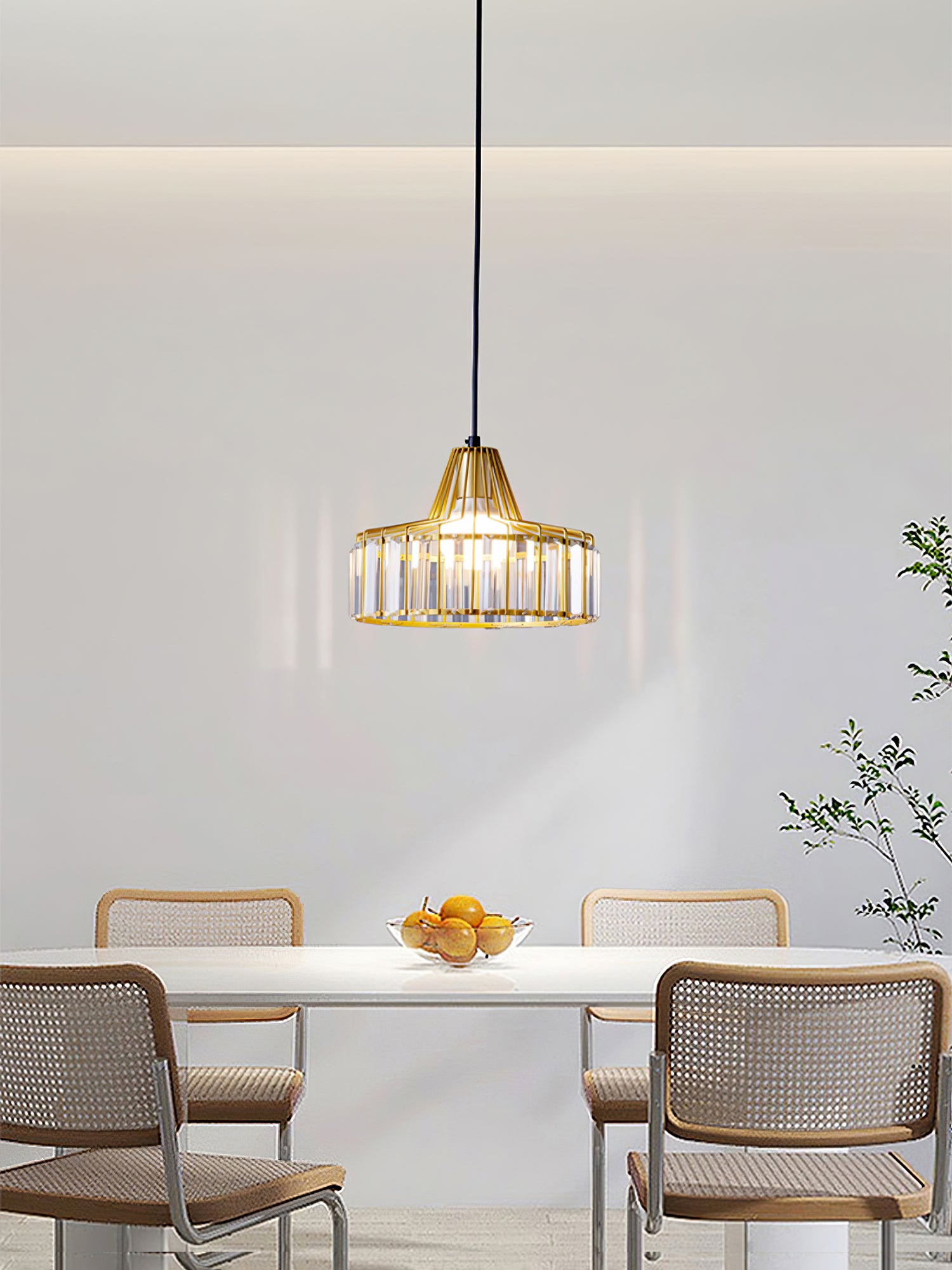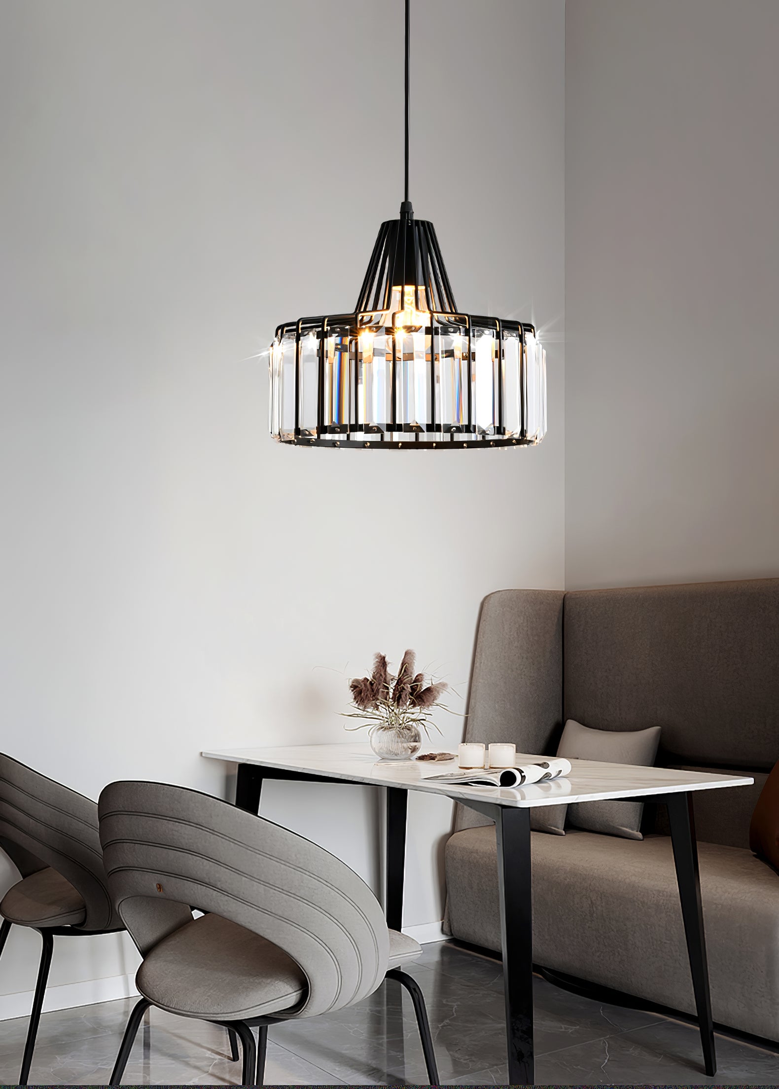 Tässä Crystal Drum -riippuvalaipussa on kauniisti muotoiltu kristallilasivarjostin, jossa on kullan tai mustat viimeistelyt. Sen hienostunut muotoilu antaa tilaan tyylikkään, modernin ilmeen, joka kestää vuosia.