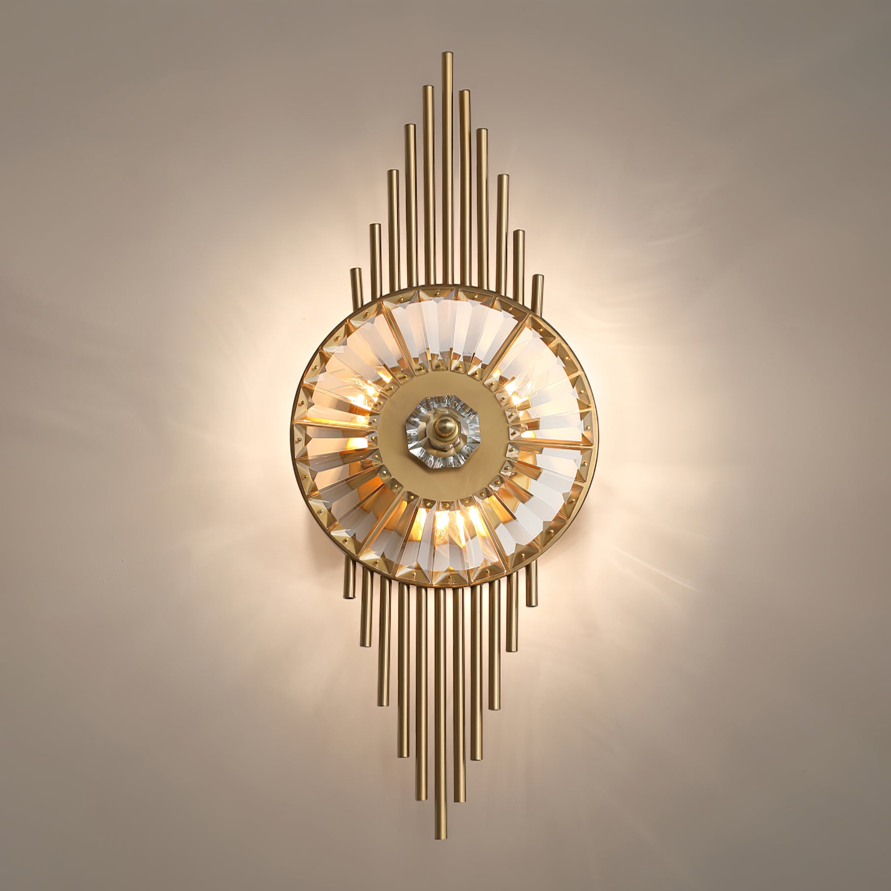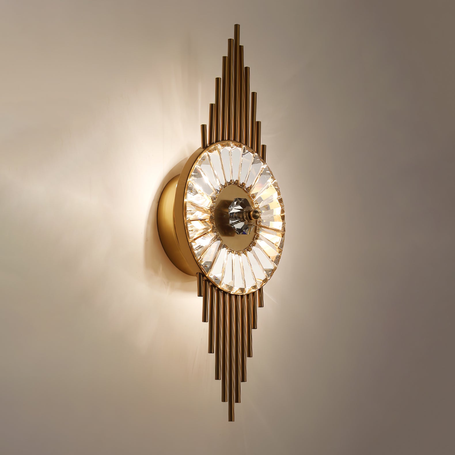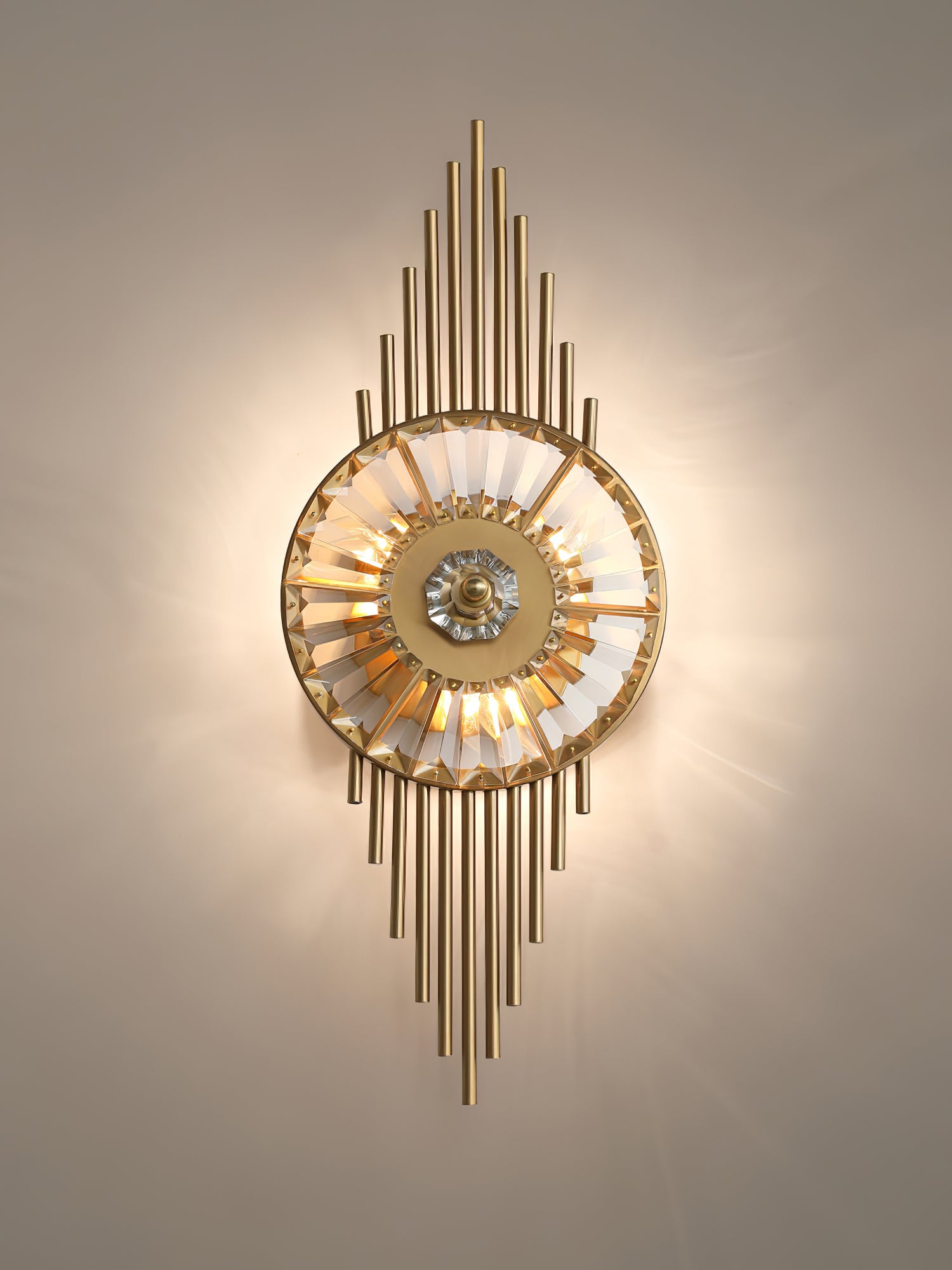 Crystal Gear Gold Wall Light on moderni ja ylellinen valaisin, jossa on ruostumattomasta teräksestä valmistettu runko, vaihteistomainen kristallilasivarjostin ja kullanvärinen viimeistely. Kestävä ja tyylikäs, se on täydellinen ilme mihin tahansa huoneeseen.