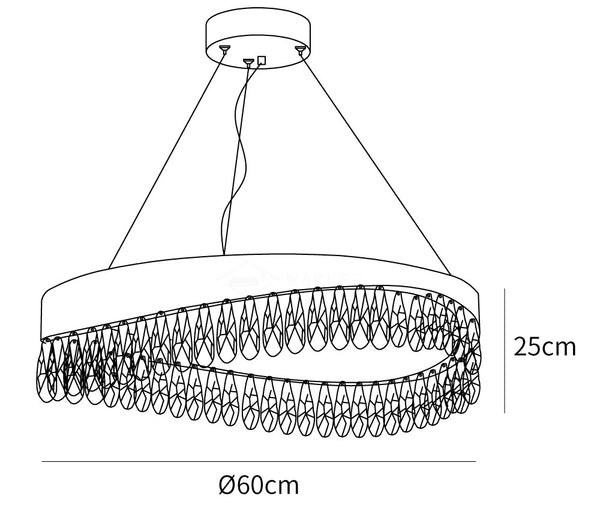 Tämä upea LED-kattokruunu on viimeistelty kuparilla. Runko on valmistettu ruostumattomasta teräksestä pyöreässä muodossa ja siinä on kirkkaat kristallikorostukset. LED-lamppu on integroitu runkoon. Säädettävät johtolenkit tekevät tästä valaisimesta sopivan useimpiin kattokorkeuksiin.