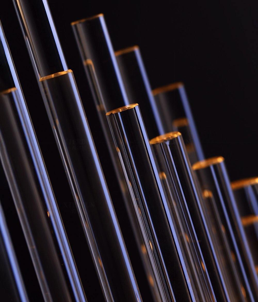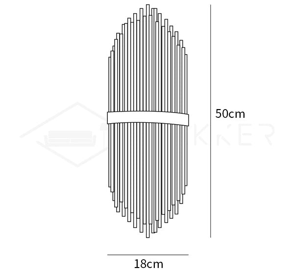Erinomaiset modernistiset seinävalaisimet koostuvat erittäin vaihtelevista lasikidetangoista, jotka muodostavat useita kerroksia. Veistoksellinen muotoilu art deco -tyylisillä pilvenpiirtäjäelementeillä. Sisältää suuret messinkiset keskiviivaverhoiluyksityiskohdat sekä messinkikehykset ja varusteet. Äskettäin reititetty ja varustettu kahdella valolla, jotka valaisevat ylös ja alas. Keskimmäisessä messinkirungossa on kaksi ristikkoa lasikidetankojen pitämiseen.