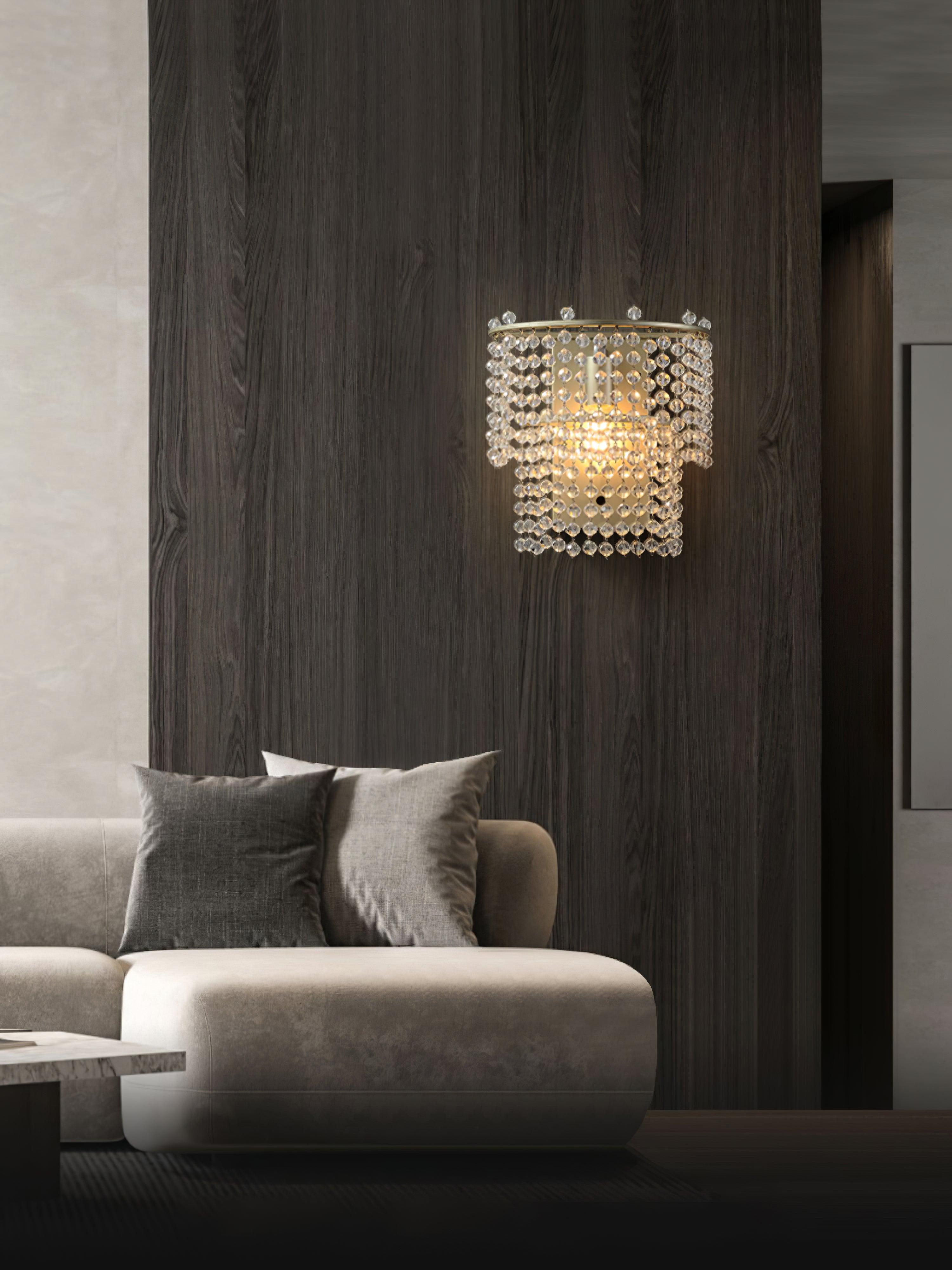 Kaunis Crystal Waterfall -seinävalaisin on valmistettu peräkkäisistä viistetyistä käsin leikatuista kristallisäikeistä, jotka on ripustettu sen herkkään runkoon. Korosta elintilaasi ja lisää huoneeseen luonnetta hohtavan kristallikruunun avulla. Luo superdramaattisen ja ylellisen vesiputousefektin valaistuna.