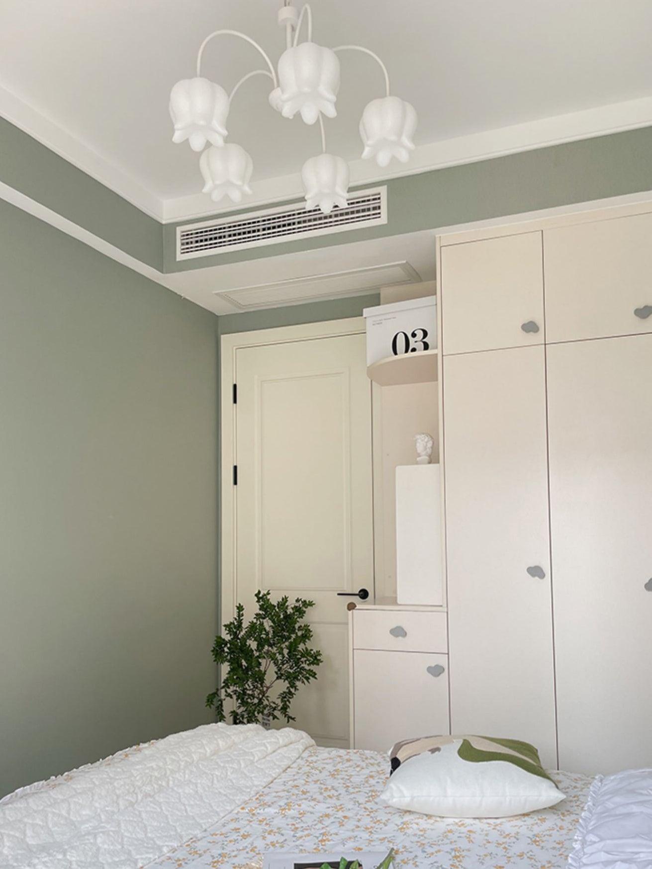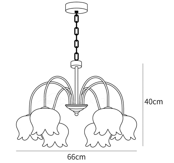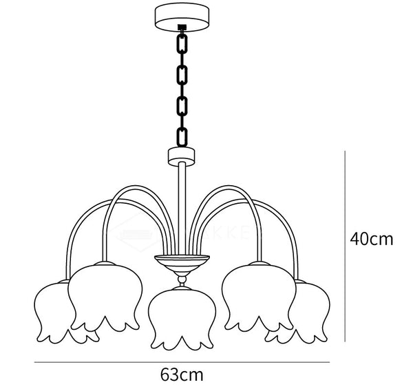 Tämä kaareva käsivarsi kellokruunu, jossa on valkoinen kielo, lisää ripauksen hienostuneisuutta mihin tahansa kattoon. Tyylikkäässä valkoisessa viimeistelyssä on viisi suorareunaista nauhavarjostimia, joissa on yhteensopivia kaarevia varsia ja koristeellinen keskipylväs sekä kielovarjostin. Se tarjoaa hellävaraisen valaistuksen koko huoneeseen ja siinä on kätevä säädettävä ketjujousitus.