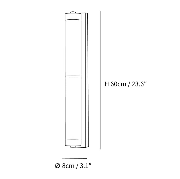 Malli A Koko: ∅ 8cm x K 60cm / ∅ 3,1″ x K 23,6″