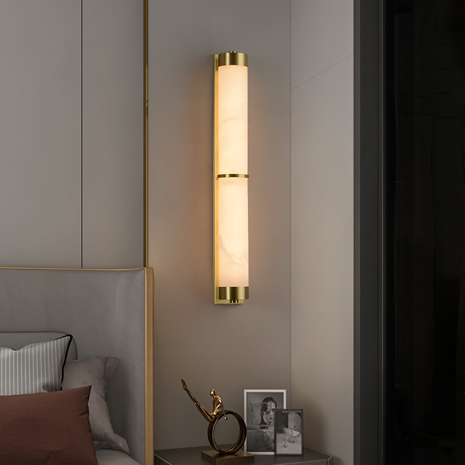 Cylindra Wall Light on suunniteltu täydentämään sekä modernia että klassista sisustusta, ja se on ihanteellinen luomaan kutsuva tunnelma mihin tahansa käytävään, makuuhuoneeseen tai olohuoneeseen. Messinkielementit luovat sulavan kontrastin alabasterin kanssa tarjoten ripauksen nykyaikaista hienostuneisuutta säilyttäen samalla ajattoman armon ilmapiirin.
