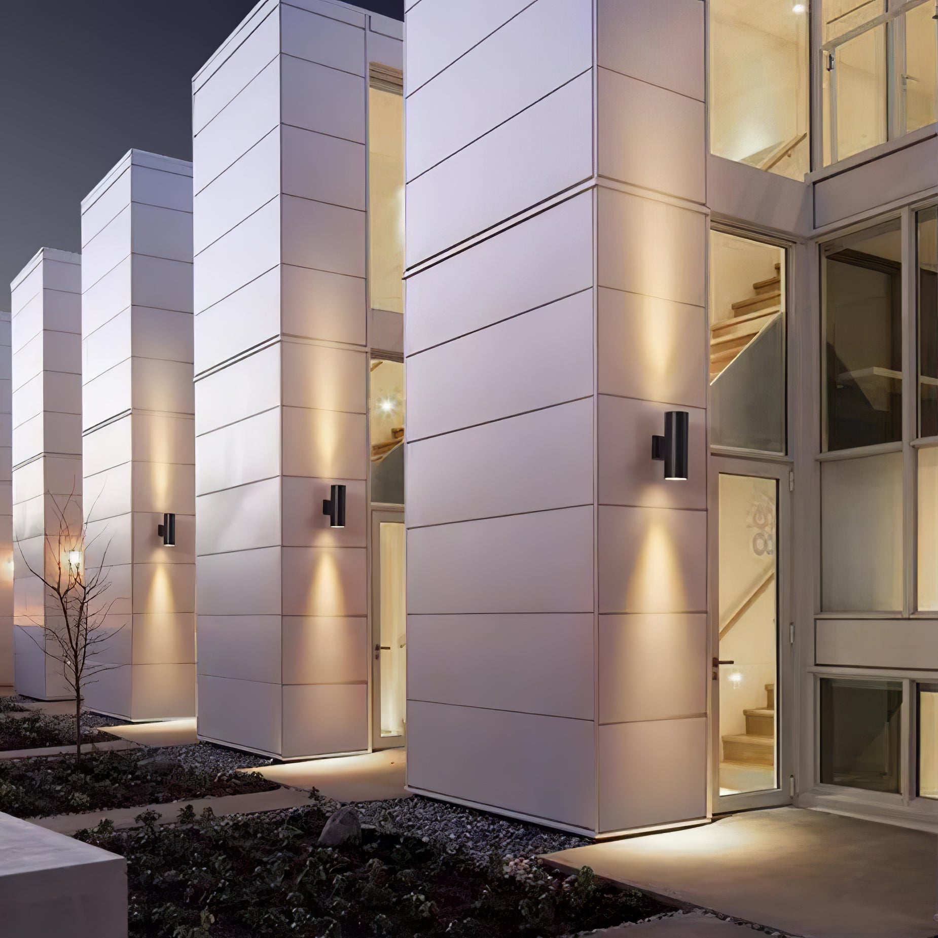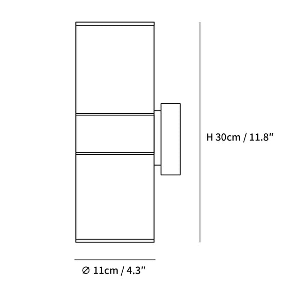 Tämä sylinterimäinen ulkoseinävalaisin on tyylikäs ja moderni muotoilu sylinterimäisellä varjostimella, joka lisää houkuttelevan silauksen mihin tahansa ulkotilaan. Sen vedenpitävä ja kestävä rakenne takaa pitkän käyttöiän ja sopii sekä sisä- että ulkotiloihin. Nauti kirkkaan, pitkäkestoisen valaistuksen eduista samalla kun luot ainutlaatuisen tunnelman tällä seinävalaisimella.
