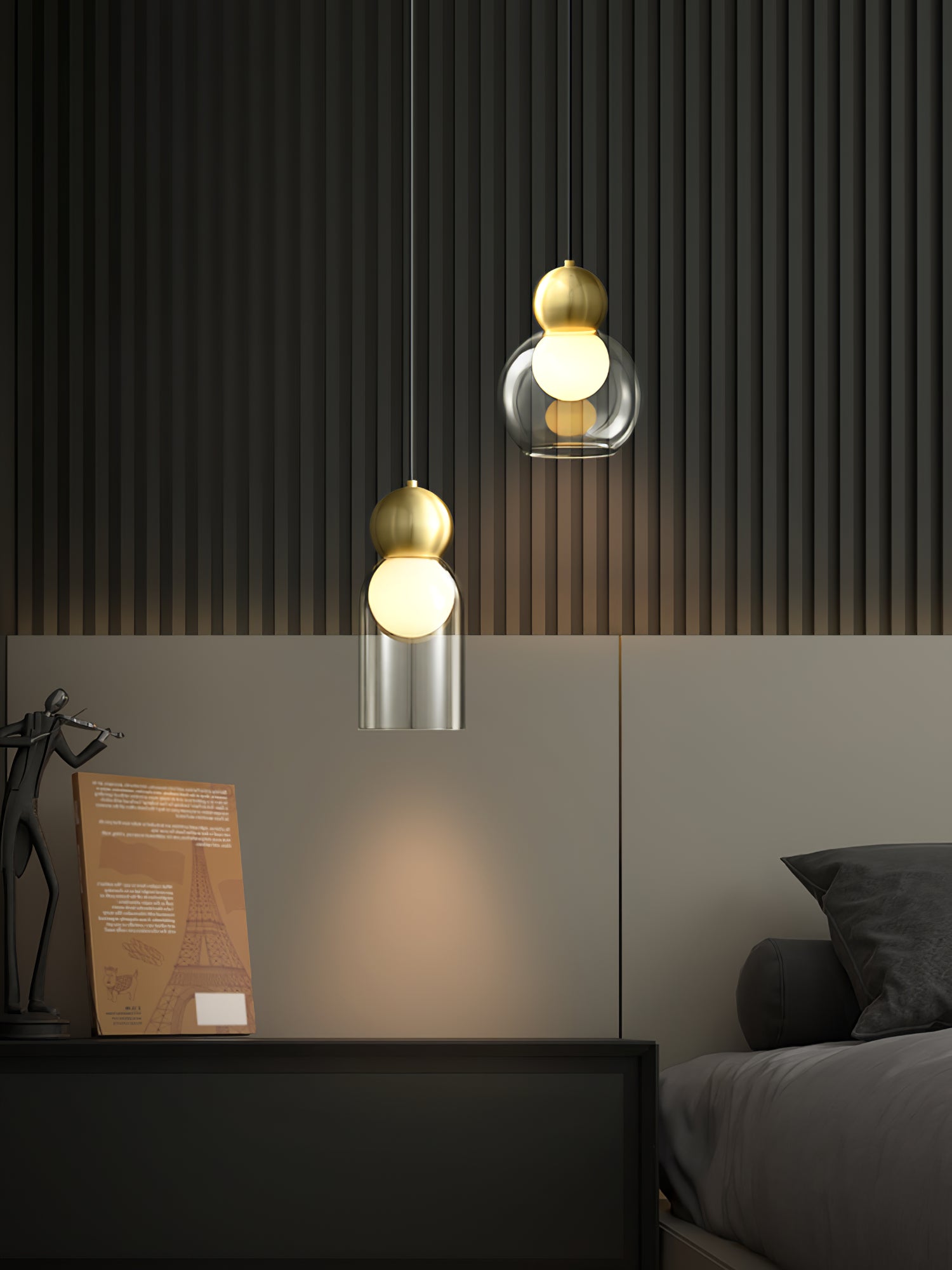 Modernin pohjoismaisena riippuvalaisimena Dani Brass Pendant Lamp yhdistää lasin kauneuden ja geometrisen hahmon, joka on kuin orkesteri-instrumentti, soittaen siroa melodiaa.