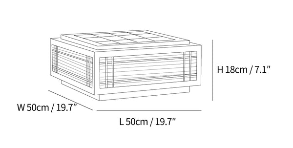Koko: P 50 cm x L 50 cm x K 18 cm / P 19,7″ x L 19,7″ x K 7,1″