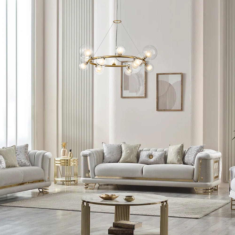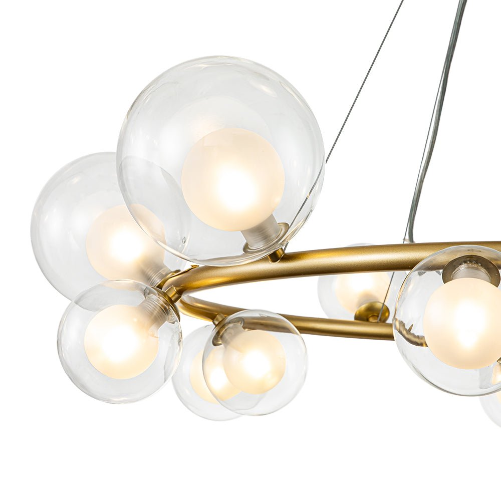 Nauti hienon rengaskruunumme hassuista viehätyksistä, jotka ovat samanlaisia kuin leikkisä enkeli, joka kätkee valokehänsä vaahtokylpyyn. Tämä ihastuttava luomus on osoitus luovuudesta ja miellyttävistä yllätyksistä. Tässä kuplakruunussa on tyylikäs ja hoikka rengas, joka on koristeltu erikokoisilla lasipalloilla, ja siinä on ainutlaatuinen 2-kerroksinen muotoilu sekä kirkkaalla että himmeällä lasilla. Tuloksena on koristeellinen halo-kattokruunu, joka yhdistää vaivattomasti ilmavan, eteerisen kosketuksen kodikkaan tunnelmavalaistukseen. Koristatpa ruokasaliasi, olohuonettasi, keittiösaarekettasi, makuuhuonettasi, aulaasi tai sisäänkäyntiäsi, anna tämän kiehtovan lasipallon kuplarengaskruunun glamourin tuoda tilaan ylellisyyttä ja eleganssia.Tiedot